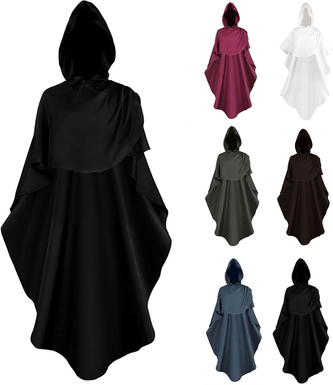 WURTON Costume unisex con cappuccio, mantello da vampiro, per Halloween, cosplay, carnevale, feste a tema