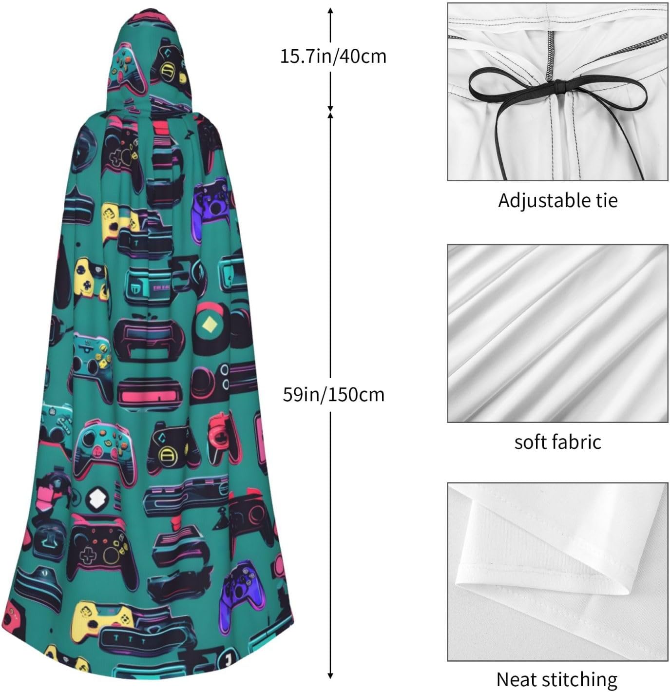 Entra nel regno magico con il nostro mantello con cappuccio Supreme, un costume unisex con cappuccio progettato per migliorare le tue esperienze di festa. Che si tratti di una festa a tema vampiro, invisibile, Halloween, cosplay o carnevale, questo mantello si abbina perfettamente alla tua persona fantasiosa. \r Realizzato in fibra di poliestere di prima qualità, il nostro mantello ti garantisce un'esperienza confortevole, leggera da indossare. È dotato di un cappuccio oversize e di una lunghezza lunga e confortevole, senza cerniera per un'esperienza senza restrizioni. Il tessuto non pruriginoso aggiunge al tuo quoziente di comfort. \r Che si tratti di Halloween, un evento cosplay, una festa a tema, uno spettacolo di fumetti o semplicemente un incontro pieno di divertimento, il nostro mantello ti renderà la star dello spettacolo. Inoltre, la sua natura facile da pulire ti assicura di poterlo indossare ancora e ancora senza preoccuparti di complicati processi di pulizia.