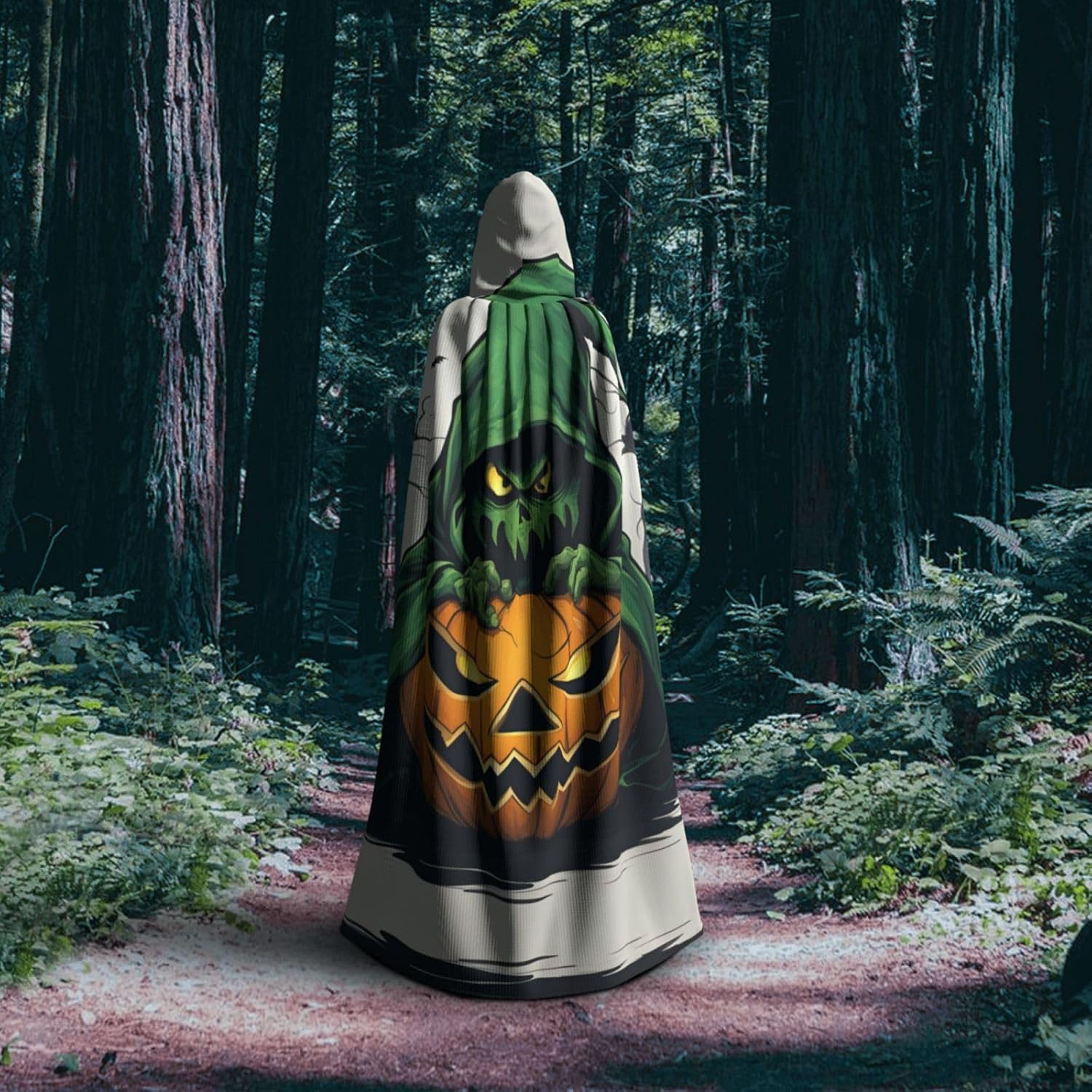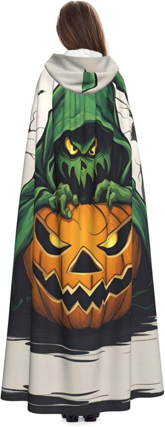 WURTON Green Ghost Horror Halloween Pumpkin 1 Stampa Unisex Mantello Con Cappuccio Costume Donne Uomini Vampiro Halloween Cosplay Carnevale Festa a Tema
