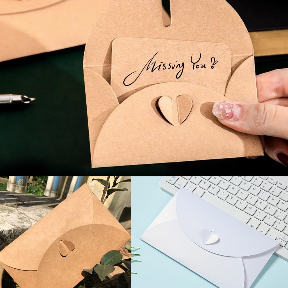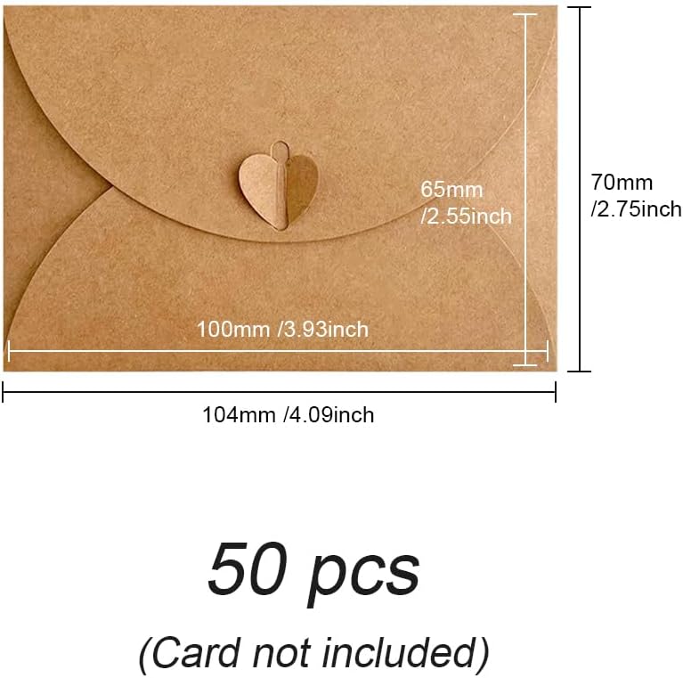 Contenuto della confezione: 50 pezzi di busta di carta kraft vintage marrone con chiusura a cuore, ogni busta ha una chiusura a forma di cuore per la chiusura, una quantità sufficiente per soddisfare le vostre esigenze. Materiale eccellente: queste buste kraft sono realizzate in carta kraft vintage, e le buste di carta robusta non si rompono o deformano facilmente. Dopo la piegatura 10,5 cm x 7 cm, può contenere carte di credito di debito, carte di credito biglietti di auguri. (Può essere utilizzato con le nostre carte, questa busta non contiene carte) Design del sigillo: le buste di carta Kraft hanno pulsanti d'amore squisiti e belli, che rendono le buste più alla moda ed eleganti, e possono anche proteggere i vostri biglietti d'auguri o lettere. Fai da te: le nostre buste di carta kraft sono vuote, potete scriverci sopra auguri e benedizioni e potete anche decorarle con motivi, parole, timbri, ecc. Versatile: La copertina delle nostre buste Kraft è vuota, applicabile alla creazione fai-da-te del proprio stile. Perfetta per la creazione di biglietti, inviti a feste, biglietti per le vacanze, biglietti di compleanno, inviti a nozze, biglietti regalo di Natale, San Valentino, è possibile disegnare o scrivere tutto ciò che si desidera.