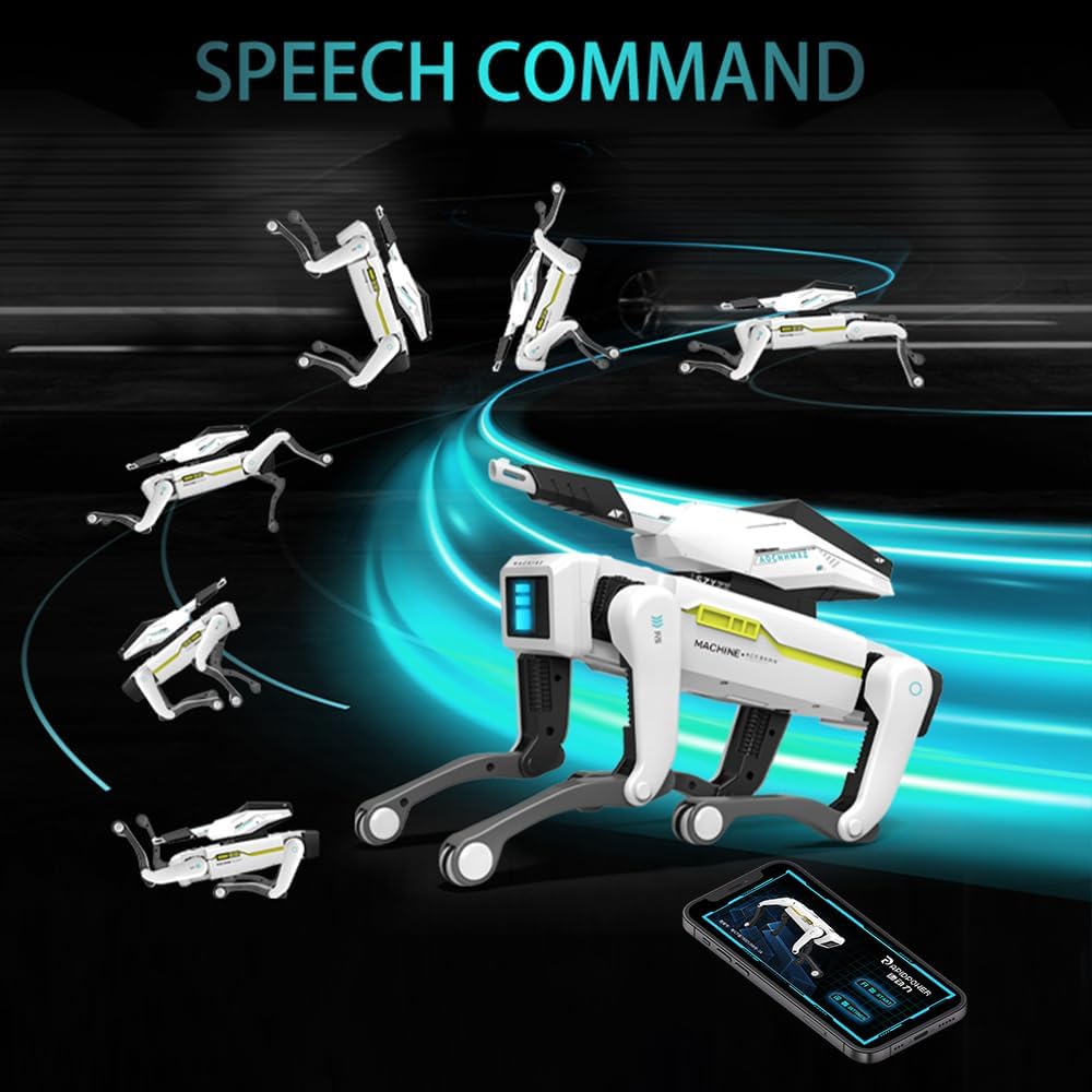 Cane robot RC con bomba ad acqua: si tratta di un nuovo cane robot telecomandato. Il cane robot telecomandato ha un palloncino ad alta capacità per sperimentare il divertimento del tiro con bombe d'acqua. Il cane robot intelligente supporta le connessioni Bluetooth e può essere controllato tramite comando vocale. Programmazione intelligente: il cane robot telecomandato ha un sistema di programmazione integrato, grazie ai segnali di programmazione APP il cane robot può eseguire una serie di azioni come saluto, esercizio Kung Fu, nuoto, seduta, capriola, benedizione e così via. Dopo aver completato la programmazione, premere il pulsante per dimostrare. Questo è l'ideale per promuovere l'interesse e le capacità dei bambini nella programmazione. 12 tipi di comandi vocali: il cane robot può eseguire 12 tipi di comandi vocali. Scansiona il codice QR sulle istruzioni e scarica l'app sul tuo telefono. Dopo aver premuto i comandi vocali APP e aver parlato di comandi vocali come seduto, in piedi, saluti, pattuglia, ecc., Il cane robot può terminare le prestazioni. Nota: i comandi vocali sono disponibili solo in inglese. Funzioni multiple: il cane robot ha diverse funzioni come scuotere le mani bioniche, programmare, cantare, ballare, raccontare, ecc. che possono portare al vostro bambino un divertimento senza fine. Gli altoparlanti integrati di alta qualità possono riprodurre musica dinamica e ballare in modo flessibile con il ritmo. Movimenti delicati e interessanti, occhi lampeggianti. Ottima idea regalo: questo cane robot telecomandato è ben confezionato, perfetto per regali di compleanno, Natale, Halloween, feste per ragazzi e ragazze di età compresa tra 3 e 12 +. Il cane macchina è molto interattivo e divertente, ideale per accompagnare la crescita dei bambini e ravvivare l'atmosfera della famiglia e della festa!