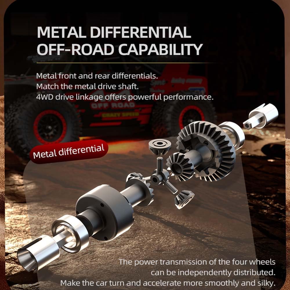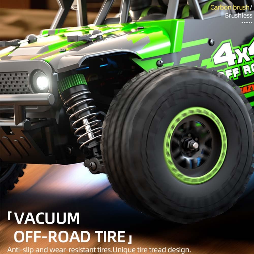 【Motore brushless 2433-3800KV + custodia per il trasporto】Questa è una versione migliorata del motore brushless 1:20 RC fuoristrada. Rispetto ai motori a spazzola, i motori brushless riducono la perdita di energia e offrono più potenza. Questo fuoristrada ad alta velocità viene fornito con una borsa per il trasporto e la conservazione delle auto telecomandate, che facilita il trasporto e la conservazione. Configurazione premium: il design magnetico della carrozzeria facilita la sostituzione della batteria. Telaio professionale in nylon + componenti metallici + elementi elettronici. I differenziali dell'asse anteriore e posteriore sono stati aggiornati al metallo per una maggiore durata. 【55 km/h, 50 minuti di autonomia】 Dotato di un potente motore di propulsione, raggiunge velocità fino a 55 km/h. Una batteria da 800 mAh garantisce 50 minuti di divertimento e rende il tuo veicolo un fuoristrada potente e popolare. Eccezionale capacità fuoristrada: gli ammortizzatori a molla indipendenti con quattro ammortizzatori speciali assorbono efficacemente gli urti dalle irregolarità della strada. Guida senza intoppi su sabbia, erba e terreni fangosi. Regalo perfetto: dotato di pneumatici resistenti all'usura per ridurre al minimo l'usura delle parti, il veicolo dispone di una maggiore resistenza, resistenza agli urti e protezione anti-ribaltamento. Questo lo rende il regalo ideale per bambini e adolescenti. Offre un"autentica esperienza fuoristrada e allo stesso tempo acuisce il senso dell"orientamento.