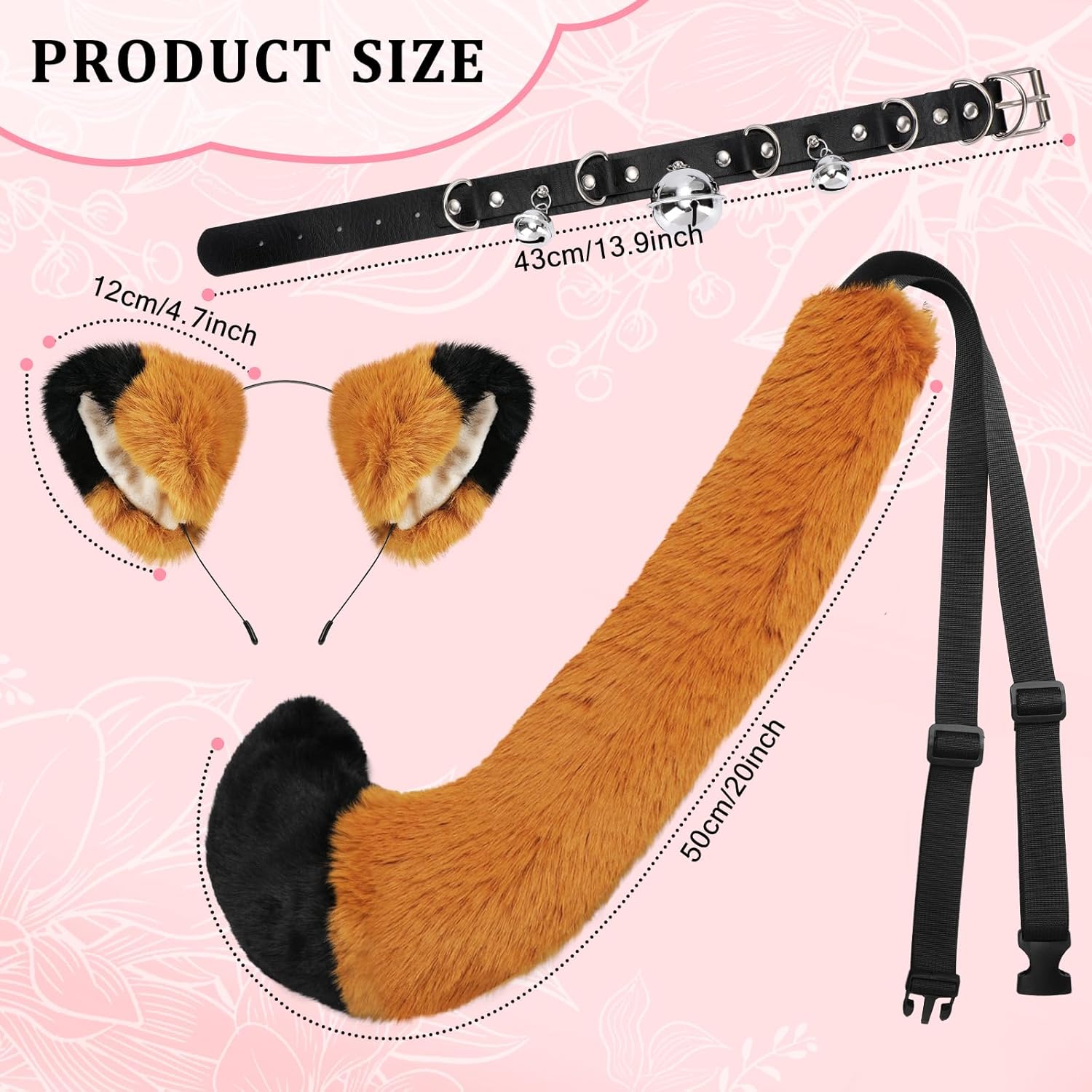 The tail is much smaller than the picture but its still good quality, the tail is stiff and cant be adjusted, ears are super soft and the collar is great material! Bells work!
