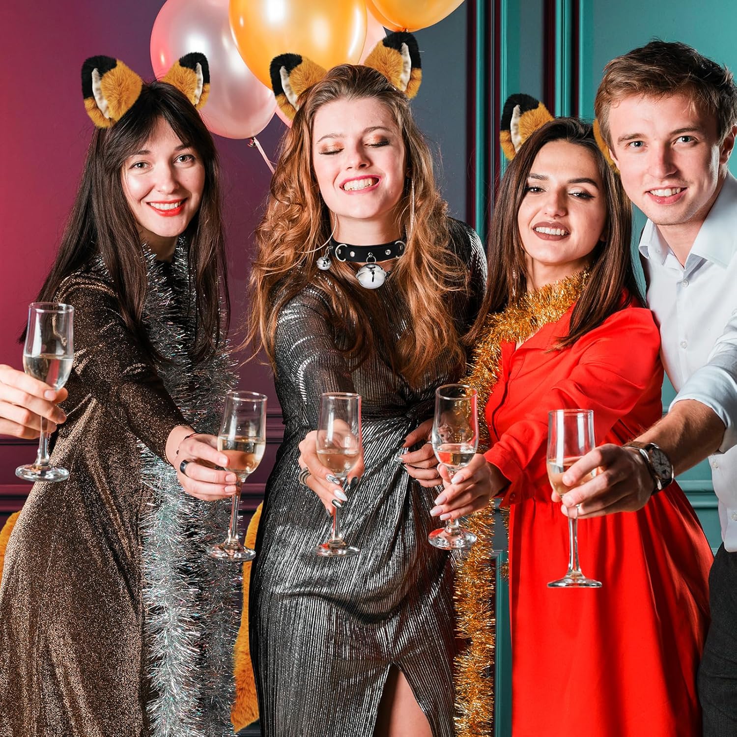 XEPST Set Coda e Orecchie, Costume Cosplay Costume Coda di Volpe di Gatto, Coda di Volpe in Pelliccia Sintetica con Orecchie e Collare a Campane per Costume di Halloween