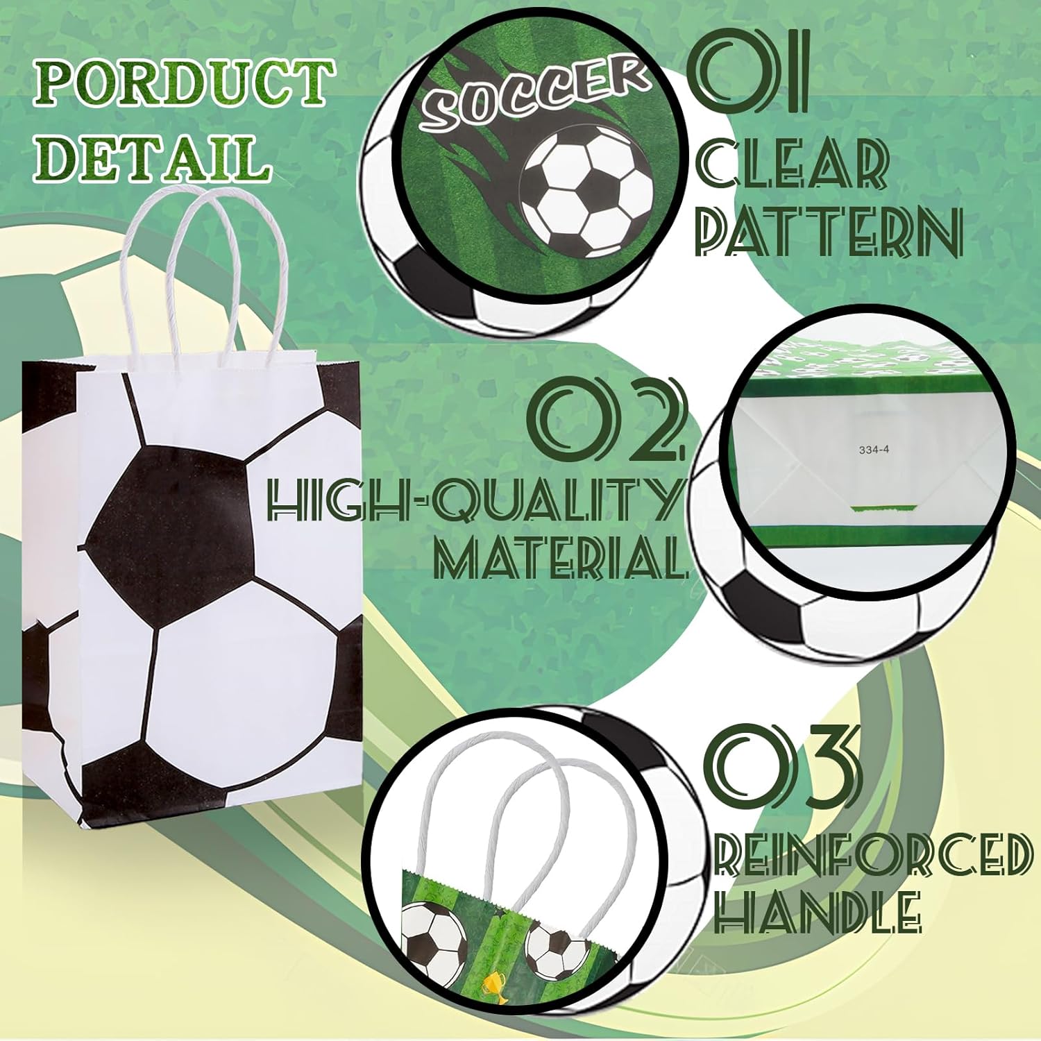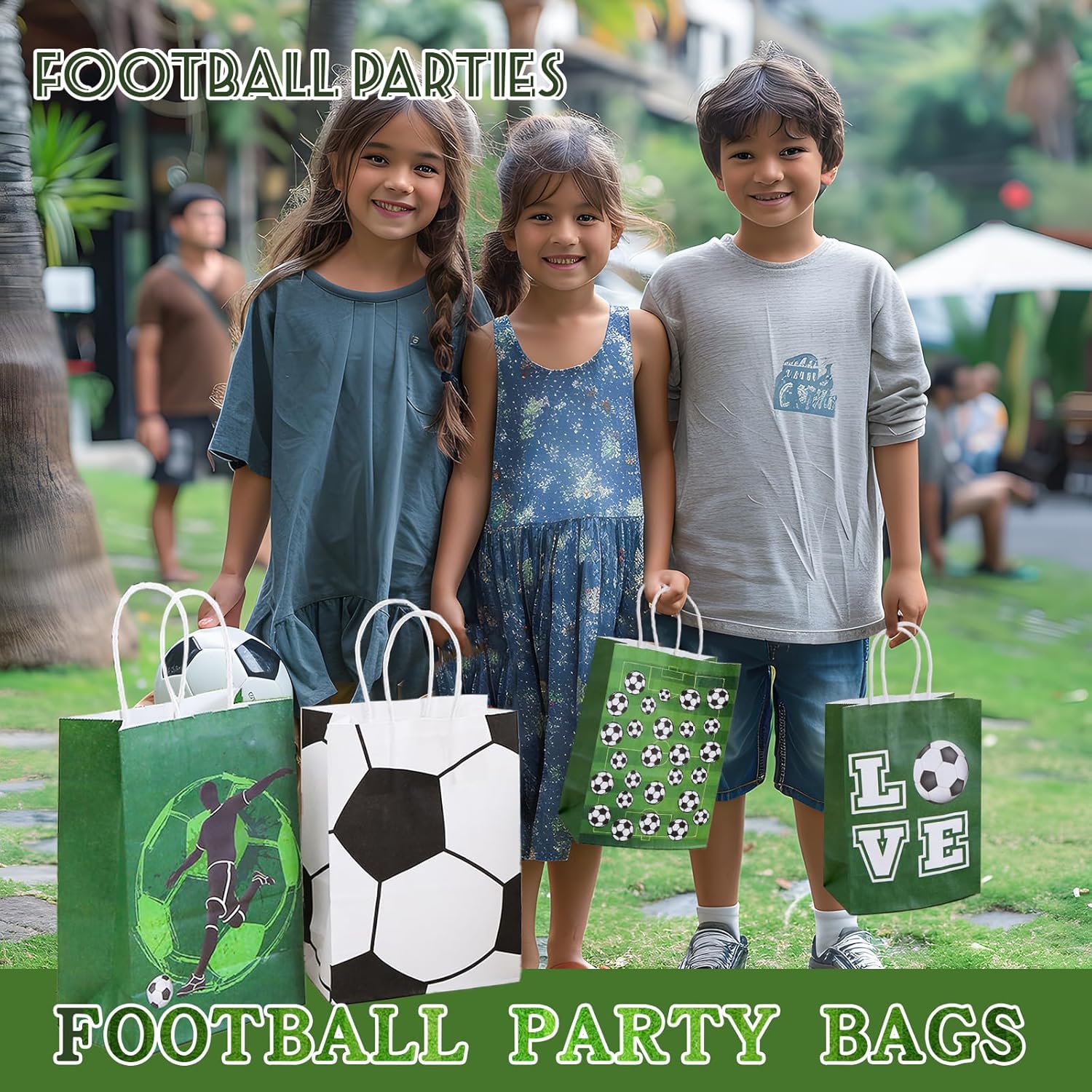⚽ 【Materiale di alta qualità】 I sacchetti di carta da calcio sono realizzati in carta ecologica, resistente e durevole, non facile da strappare, sicura, non tossica e degradabile, puoi usarla con sicurezza. ⚽【Base Rinforzata】La base rettangolare delle borse regalo da calcio è facile da appoggiare e il contenuto della borsa non perde facilmente, rendendolo facile da trasportare. ⚽ 【Design unico】 Il motivo del calcio di compleanno della borsa regalo è stampato su entrambi i lati, il che attira davvero l'attenzione degli ospiti e migliora l'atmosfera della festa. È una delle migliori decorazioni per feste a tema. ⚽ 【2 Stili】 I sacchetti regalo per feste di calcio hanno due stili tra cui scegliere, 12 pezzi ciascuno, e la grande capacità offre spazio sufficiente per soddisfare le esigenze della festa o dell'uso quotidiano. ⚽ 【Ampia applicazione】 Le graziose borse di compleanno da calcio possono essere utilizzate per feste a tema calcistico, compleanni di bambini, regali per bambini o altre feste a tema sportivo, perfette come regali per gli ospiti.