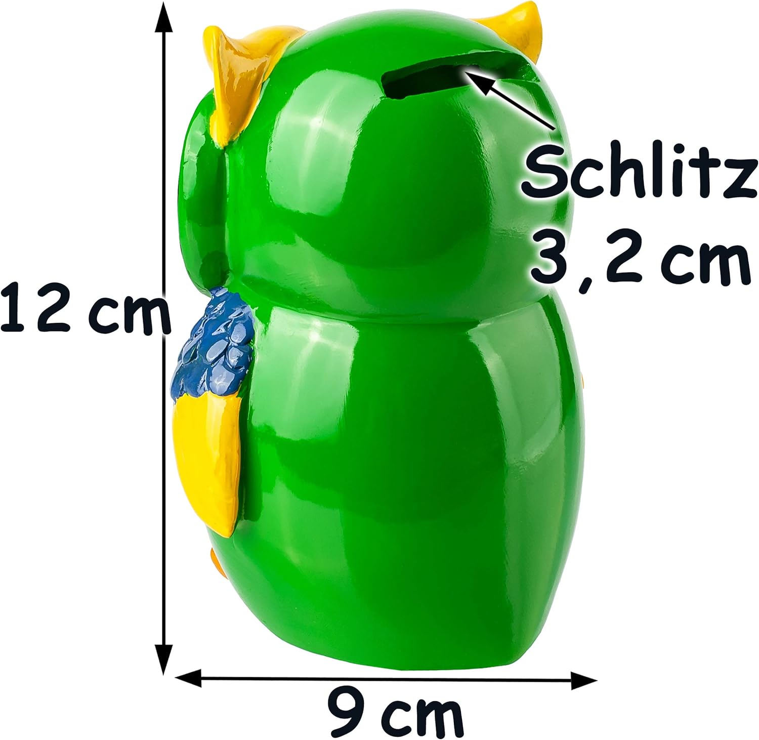 salvadanaio molto bello ____ con dettagli elaborati e dipinti amorevoli ____ Motivo: gufo __ Colore: verde / giallo Nella parte inferiore c'è un tappo di gomma che viene semplicemente spinto fuori per rimuovere i soldi _____ il salvadanaio può essere utilizzato più e più volte Taglia XL: ca. 12 cm di altezza; 7 cm di lunghezza e 9 cm di larghezza / ___ Materiale: resina sintetica stabile e di altissima qualità (un tipo di plastica - polystone) ___ La fessura di inserimento (larga 3,2 cm) si trova nella parte posteriore della testa. Questo salvadanaio è ___ Ideale per risparmiare, come regalo speciale in denaro / buono - o per nascita / battesimo, compleanno di bambini. Adatto a qualsiasi celebrazione, festa, festa sul tema degli uccelli, degli uccelli, delle foreste, degli zoo, delle fiabe _____ Può essere utilizzato come buono regalo per denaro, biglietti e molto altro. essere utilizzato. .…. __ ideale per TUTTE le età! compreso: Individualmente con il vostro NOME DESIDERATO - il nome sarà adattato ___ il nome verrà richiesto - AUTOMATICAMENTE entro 4 ore - NON inviare un messaggio in anticipo ___