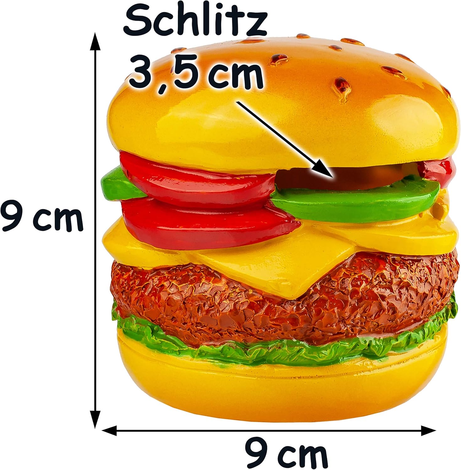 salvadanaio molto bello ___ con dettagli elaborati e dipinti amorevoli ____ Motivo: hamburger / hamburger Nella parte inferiore c'è un tappo di gomma che viene semplicemente spinto fuori per rimuovere i soldi _____ il salvadanaio può essere utilizzato più e più volte Taglia XL: ca. 9 cm di altezza; 9 cm di lunghezza e 9 cm di larghezza / Materiale: resina sintetica stabile e di altissima qualità (un tipo di plastica - polystone) ________ la fessura di inserimento (3,5 cm di larghezza) si trova sul retro questo salvadanaio è ___ ideale per risparmiare, come regalo speciale in denaro / per un buono _____ utilizzabile come buono regalo, buono ristorante, come registratore di cassa per il caffè, per la prossima visita allo snack bar / fast food / street food / ristorante turco, per uomini / regalo maschile, per addio al celibato e molto di più. essere utilizzato. Questo hamburger fa venire voglia di estate, sole, vacanze, viaggi... __ ideale per TUTTE le età! Individualmente con il vostro NOME DESIDERATO - aggiungete semplicemente l'articolo "Nome desiderato" come extra nel carrello, il nome verrà quindi adattato