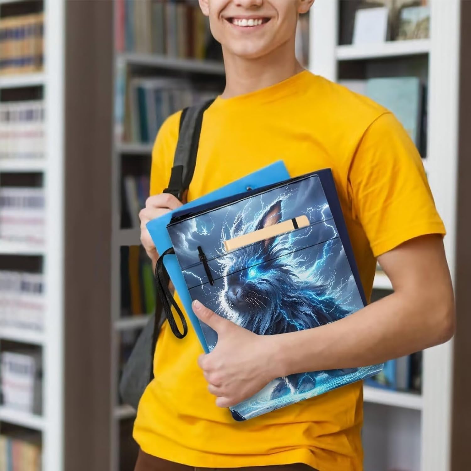 Materiale di alta qualità: realizzata in poliestere di alta qualità, la nostra custodia per libri è morbida, confortevole e resistente all'usura. È progettato per durare, garantendo una protezione duratura per i tuoi amati libri. Vestibilità versatile: con dimensioni di 22 x 11,4/29 cm, la nostra custodia per libri è adatta per una vasta gamma di libri, tra cui romanzi con copertina rigida, quaderni, libri di testo e libri tascabili. Assicurati di misurare il tuo libro prima dell'acquisto per garantire una vestibilità perfetta. Design comodo e protettivo: la chiusura a cerniera liscia fornisce una protezione sicura per i tuoi libri, impedendo loro di scivolare fuori o danneggiarsi. La tasca frontale aggiuntiva consente di riporre gli accessori per lo studio, mantenendo tutto organizzato in un unico posto. Facile da trasportare: il manico in corda portatile sulla parte superiore della custodia per libri rende facile trasportare i tuoi libri ovunque tu vada. Che tu stia andando a lezione, in biblioteca o in un bar, i tuoi libri saranno trasportati in modo sicuro e conveniente. Stile personalizzato: scegli tra una varietà di stampe per aggiungere un tocco di stile personale alla custodia del tuo libro. Esprimi te stesso e fai una dichiarazione con un design che riflette il tuo gusto e la tua personalità unici.