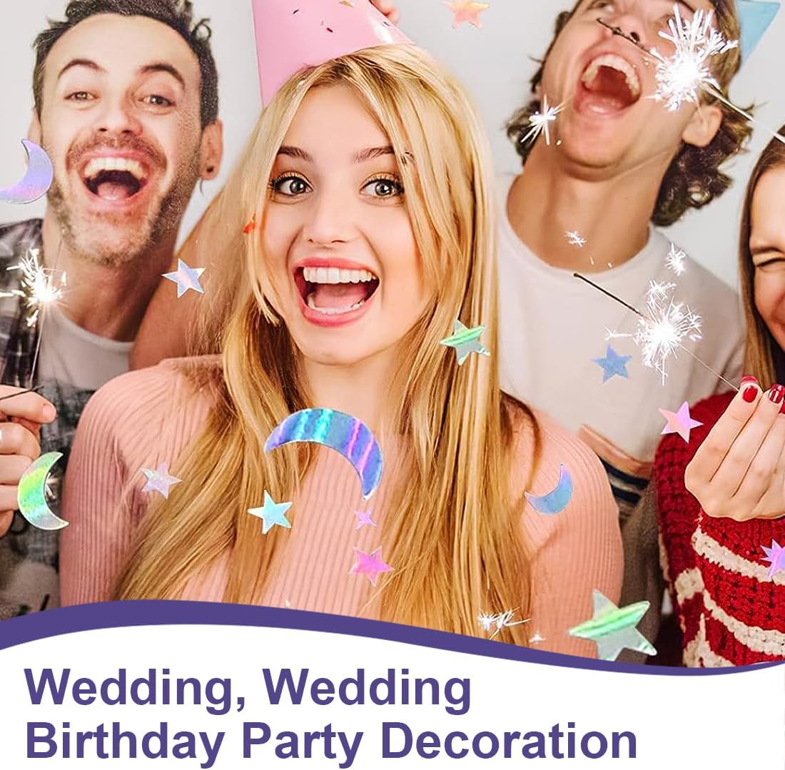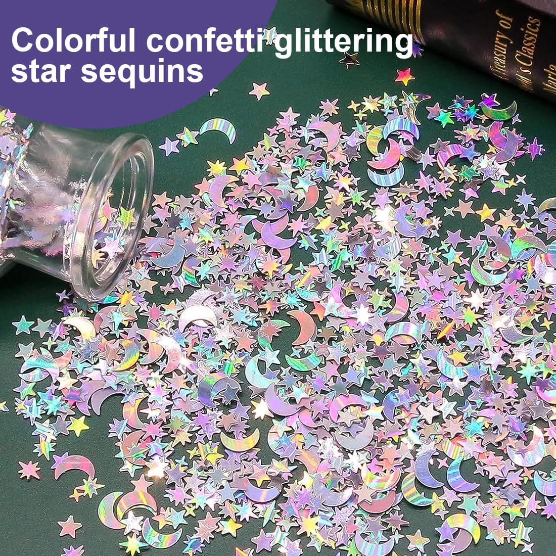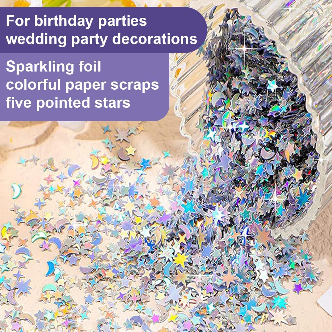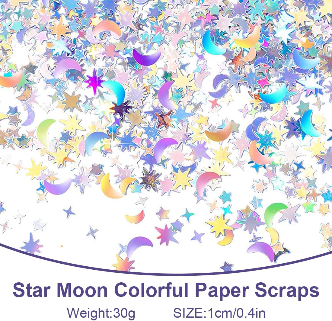 🌙【Pacchetto】: La confezione contiene 30 g di stelle e coriandoli lunari, sufficienti per la decorazione del tuo compleanno e della tua festa di matrimonio e può anche essere abbinata ad altre bomboniere. Queste stelle olografiche e coriandoli lunari sono realizzati in PVC, stampati con inchiostro sicuro e inodore. 🌙 【Dimensioni coriandoli stella e luna】 Stella a 8 punte da 7 mm, stella a 5 punte da 6 mm, stella a 4 punte da 4 mm, luna da 10 mm; la combinazione di forme diverse può creare un effetto visivo più attraente. 🌙【Paillettes a stella glitterata】Leggera e resistente, superficie liscia e scintillante, diventa lucida e mostra diversi colori sotto la luce, brillando sotto la luce, bell'aspetto, abbastanza per attirare l'attenzione. 🌙 【Usi versatili】 Questi graziosi coriandoli a stella possono essere utilizzati per le decorazioni quotidiane della tua casa, i coriandoli sono piccoli oggetti di scena per aggiungere un'atmosfera festosa alla festa. Adatto per matrimoni, baby shower, rivelazioni di genere, compleanni, addio al nubilato e altre feste. 🌙【Dimensioni】8 mm per stella a otto punte, 3 mm per stella a cinque punte, 4 mm per stella a quattro punte, 3 mm per luna; La combinazione di forme diverse crea un effetto visivo più attraente, vivido e interessante, brilla sotto la luce, bello e accattivante.