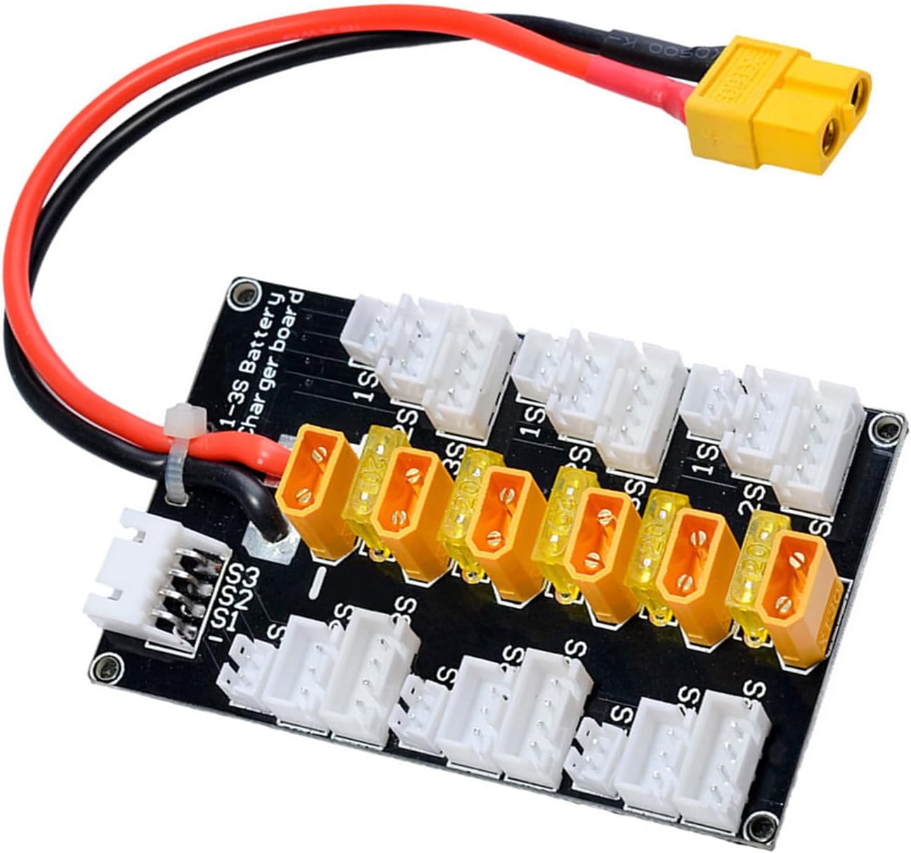 Ricarica compatibile B6, che lo rende uno strumento essenziale per una ricarica rapida e affidabile della batteria. Design durevole, questa scheda include un cavo in silicone da 18 AWG per un'uscita bilanciata, garantendo un uso prolungato e una facile connessione senza cablaggi complessi. La scheda di ricarica parallela XT30 è per una ricarica efficiente, supporta fino a 20 A di corrente di carica. Per attività all'aperto, lavori di laboratorio o progetti domestici, fornisce una soluzione flessibile ed efficiente per caricare facilmente le batterie. Per gli appassionati e gli appassionati di modellismo remoto, questa scheda di ricarica consente agli utenti di caricare più batterie contemporaneamente, migliorando il tempo di volo e l'efficienza operativa.