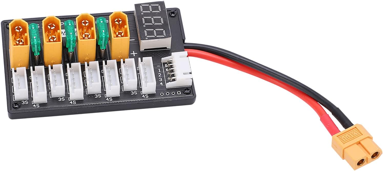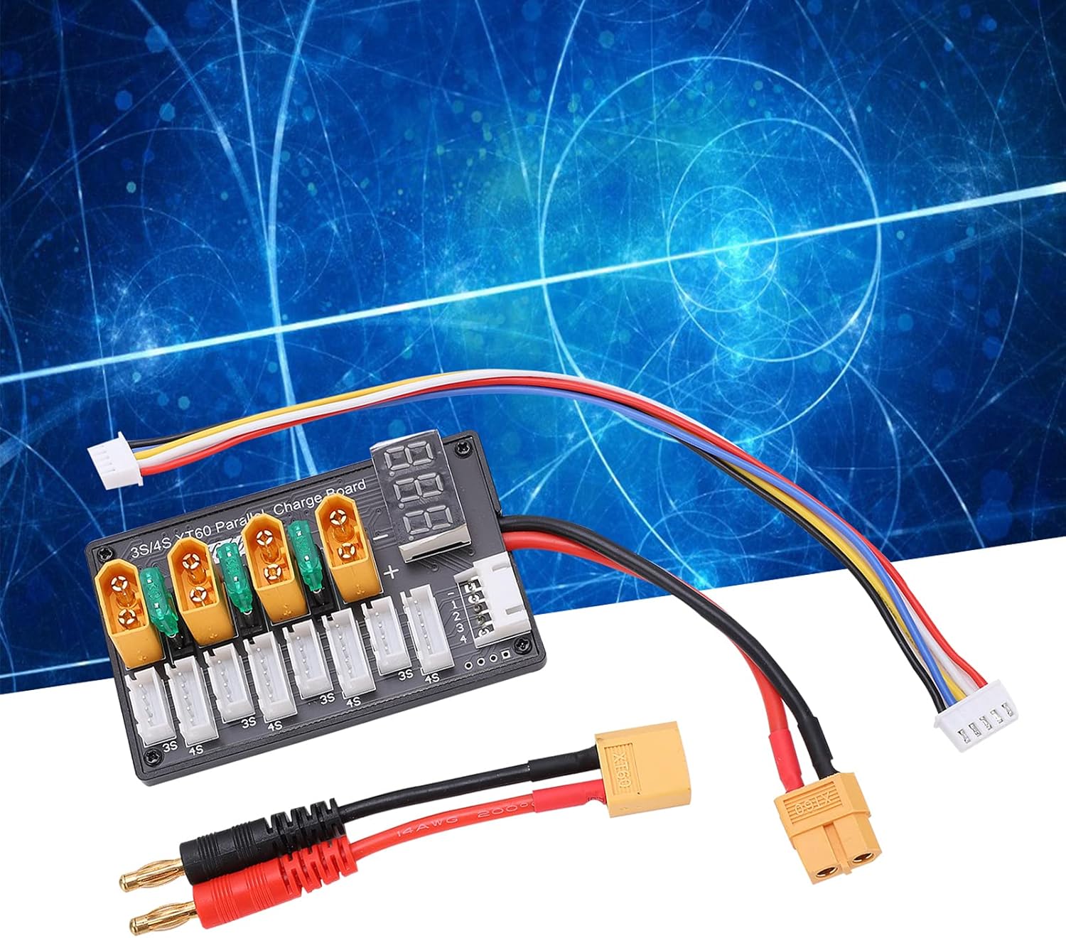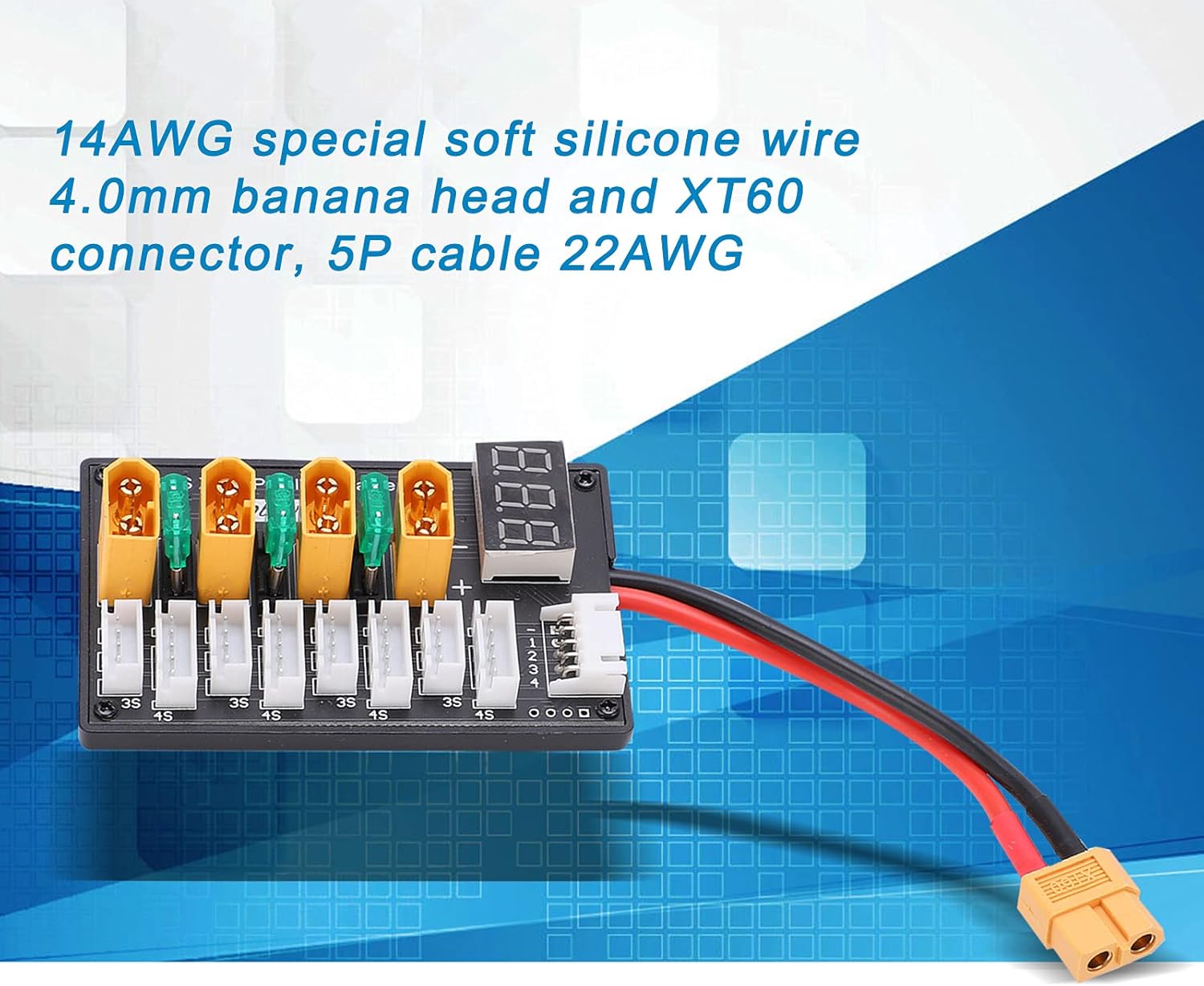 [La ricarica] può caricare per la batteria 3S 4S con protezione del fusibile 30A, garantendo sicurezza e affibilità. [Schermata di visualizzazione] è dotato di schermo che mostra la tensione a sezione singola e la tensione totale, compatibile con i caricabatterie popolari. [Design durevole] Connettore Banana Head 4.0mm e XT60 con filo silicone 14awg per la massima durata, atto per batterie modello 11,1 V/14,8 V. [AMPIA COMPATIBILITÀ] Applicabile alle batterie modello 3S 4S 11,1 V/14,8 V, atto ai caricabatterie più diffusi come IMAX B6/B6AC IDST. [Pacchetto completo] Include la sche di ricarica parallela, il connettore XT60 e il cavo piatto, soddisfacendo tutte le esigenze di ricarica.
