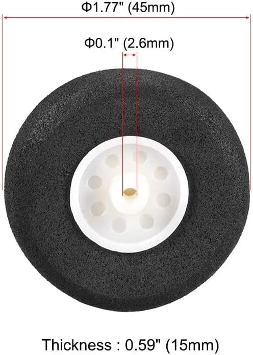 [SPECIFICHE] - Diametro esterno: 1,77" (45 mm); Spessore: 0,59" (15 mm); Diametro del foro dell'asse: 0,1 "(2,6 mm). [APPLICAZIONE] - Compatibile con modelli RC fai-da-te, come giocattoli di aeroplani RC, elicotteri RC, macchinine, ecc. [VANTAGGIO] - Pneumatici in spugna neri lisci preassemblati. Queste ruote di aeroplani modello RC conferiscono al tuo modello un aspetto sportivo. Sono progettate pensando ai modelli elettrici. [NOTA] - Nota: riprese di luce e display diversi possono far sì che il colore dell'immagine sia leggermente diverso dalla realtà. [PACCHETTO INCLUSO] - Ruote per aeroplani RC da 6 pezzi con diametro di 1,77 pollici.