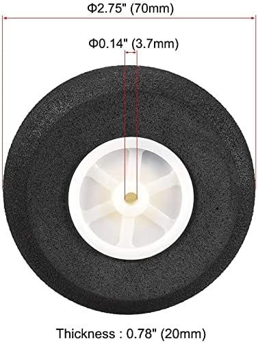 [SPECIFICHE] - Diametro esterno: 2,75" (70 mm); Spessore: 0,78" (20 mm); Diametro del foro dell'asse: 0,14" (3,7 mm). [APPLICAZIONE] - Compatibile con modelli RC fai-da-te, come giocattoli di aeroplani RC, elicotteri RC, macchinine, ecc. [VANTAGGIO] - Pneumatici in spugna neri lisci preassemblati. Queste ruote di aeroplani modello RC conferiscono al tuo modello un aspetto sportivo. Sono progettate pensando ai modelli elettrici. [NOTA] - Nota: riprese di luce e display diversi possono far sì che il colore dell'immagine sia leggermente diverso dalla realtà. [PACCHETTO INCLUSO] - 6 ruote per aeroplani RC da 2,75 pollici di diametro.
