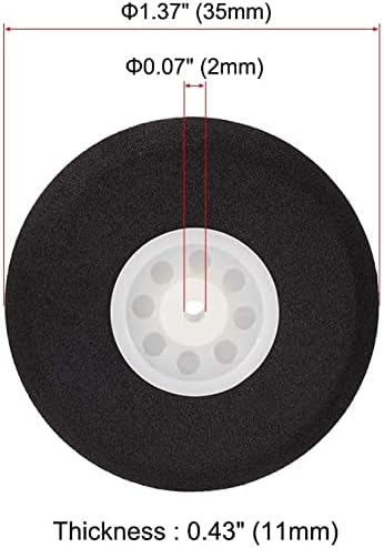[SPECIFICHE] - Diametro esterno: 1,37 (35 mm); Spessore: 0,43" (11 mm); Diametro del foro dell'asse: 0,07" (2 mm). [APPLICAZIONE] - Compatibile con modelli RC fai-da-te, come giocattoli di aeroplani RC, elicotteri RC, macchinine, ecc. [VANTAGGIO] - Pneumatici in spugna nera liscia preassemblati. Queste ruote per aeromodelli RC conferiscono al tuo modello un aspetto sportivo. Sono progettati pensando ai modelli elettrici. [NOTA] - Nota: colpi di luce e display diversi possono far sì che il colore dell'immagine sia leggermente diverso da quello reale. [PACCHETTO INCLUSO] - 2 pezzi di ruote per aeroplani RC da 1,37 pollici di diametro.