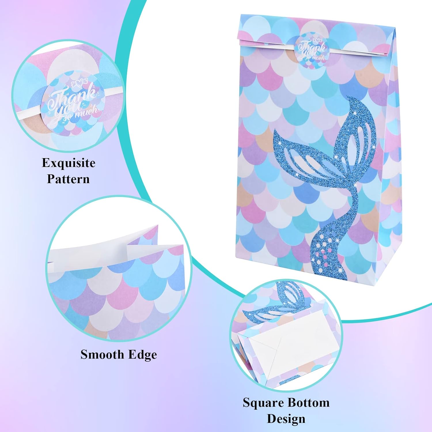 【Materiale di alta qualità】 Il sacchetto regalo a forma di sirena è realizzato in carta kraft bianca da 100 g, leggera e resistente, ecologica e senza odori particolari. La confezione include: riceverai 12 sacchetti regalo di carta e 12 adesivi rotondi. La dimensione del sacchetto regalo è 24*13*8 cm e la dimensione dell'adesivo è 3*3 cm. 【Motivi squisiti】: squame di pesce sirena e motivi a coda di pesce sono stampati su entrambi i lati della confezione regalo. Con colori piacevoli, la tua festa può diventare più squisita. L'adesivo presenta squame di pesce e la scritta "Grazie mille". 【Ampia applicazione】 I sacchetti di carta possono essere utilizzati per conservare caramelle, biscotti, cioccolatini, snack, pane, panini e altro ancora. I sacchetti regalo sono adatti per feste per bambini, lauree, Pasqua, feste di compleanno, feste estive, matrimoni e altri eventi. 【Servizio clienti】: in caso di domande dopo aver ricevuto il sacchetto regalo, non esitate a contattarci. Ti daremo una risposta soddisfacente il prima possibile.
