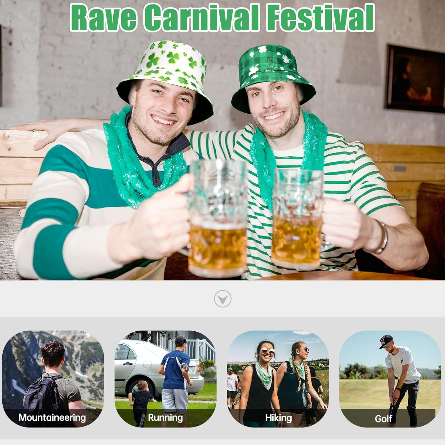 YAMEIZE si concentra sul concetto di design all'avanguardia, segue la tendenza della moda moderna e si impegna a fornirti occhiali di alta qualità, alla moda, belli e perfettamente funzionali. YAMEIZE Cappello da pescatore verde per il giorno di San Patrizio - Foglia per donna Uomo Cappello irlandese Cappello da pescatore verde Abito da viaggio reversibile a doppio uso Festa in spiaggia --- Il design a foglia verde non è adatto solo per il giorno di San Patrizio, ma anche per le solite feste, festival, ecc., che ti consente di usarlo a lungo. --- Il nostro cappello a secchiello alla moda è adatto a molti scenari, come guida, shopping, fotografia, viaggi, ecc. Particolarmente adatto per l'estate, la spiaggia, l'escursionismo, i viaggi, la pesca, il ciclismo e altre attività, può proteggere efficacemente dal sole.