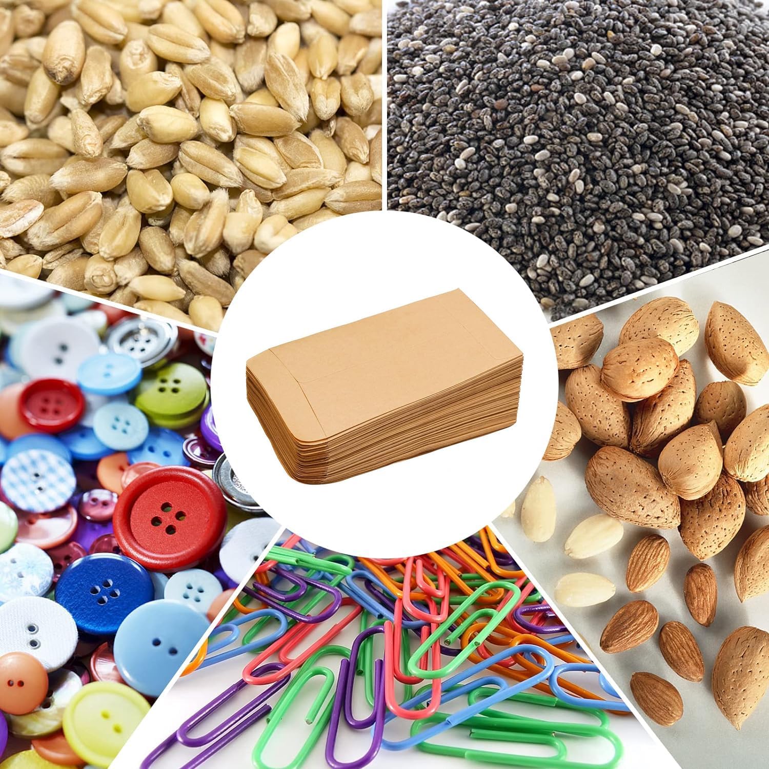 Materiale in carta kraft: le buste per semi sono realizzate in carta kraft marrone di alta qualità, che è ecologica e sicura, naturale e inodore, robusta e durevole, non facile da sbiadire e rompersi, garantendo un uso a lungo termine. Traspirabilità: le buste per semi kraft traspiranti possono ridurre significativamente i danni causati dalla conservazione di oggetti come i semi in materiali sigillanti come sacchetti di plastica. Compatte e portatili: le loro dimensioni ridotte rendono queste buste molto portatili e facili da trasportare. Si adattano perfettamente a tasche, borsette o marsupi, così puoi tenere le tue cose importanti organizzate e a portata di mano ovunque. Ampie applicazioni: puoi conservare i tuoi semi di piante preferiti come girasoli, semi di pomodoro o piccoli oggetti come monete, francobolli, bottoni, aghi, chiavi, viti. Contenuto della confezione: riceverai buste di semi da 100 pezzi, la dimensione è di ca. Etichette adesive rotonde da 10 x 6 cm e 100 pezzi, il diametro è di 20 mm, che soddisfano le vostre esigenze di utilizzo quotidiano e di sostituzione.