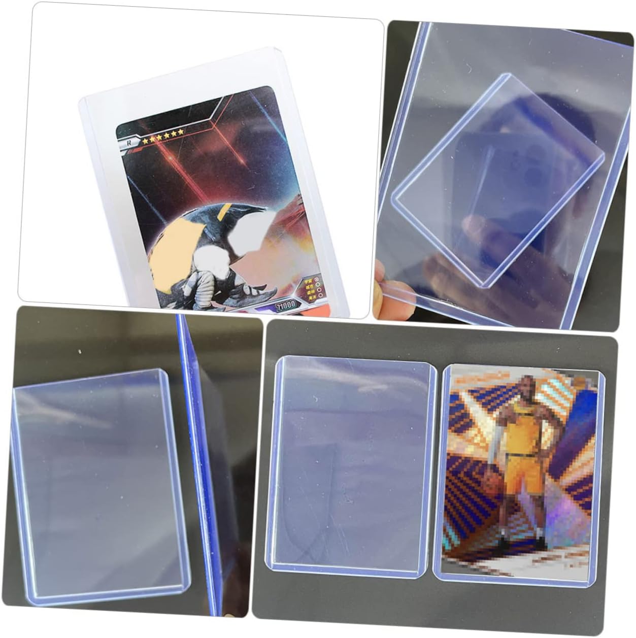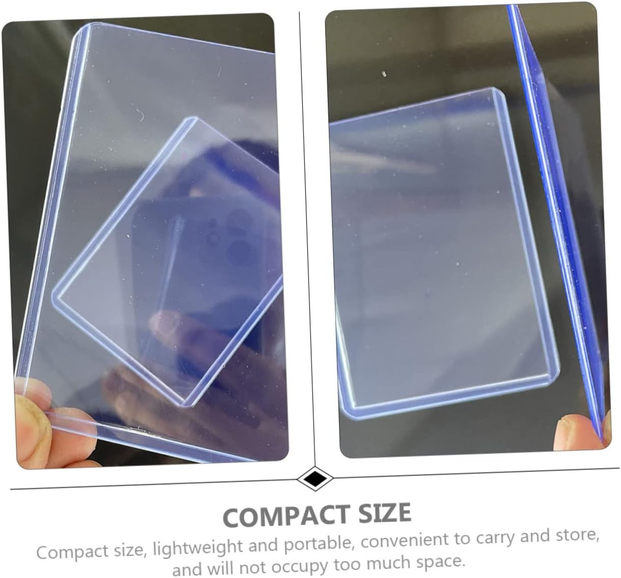 Custodia in plastica per carte: fornisce una protezione sicura per il tuo cartellino identificativo, badge, carte d'identità, biglietti da visita, carte di credito, ecc., coperture trasparenti per carte Custodia per carte: sensazione di mano confortevole, resistente all'usura e riutilizzabile, adatta e adatta per la conservazione e la protezione, protezioni per carte collezionabili Bustine protettive per carte: il design trasparente consente di vedere chiaramente il contenuto , facile da usare, bustine per carte Custodia per carte: conserva perfettamente le tue immagini di gioco, foto, cartoline, coupon o altri oggetti da collezione in modo sicuro e organizzato, custodie protettive per carte Bustine porta-carte: dimensioni compatte, leggere e portatili, comode da trasportare e riporre, non occupano troppo spazio, protezione in plastica per carte