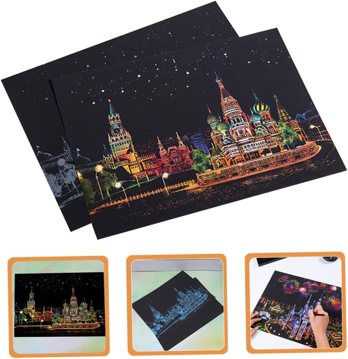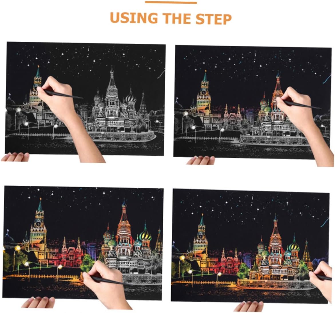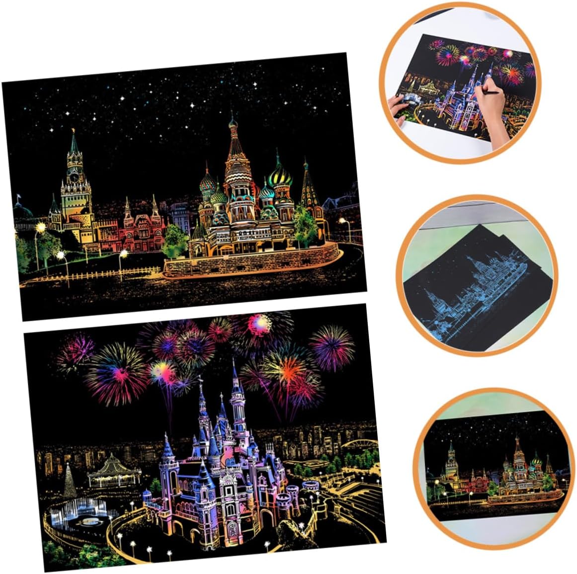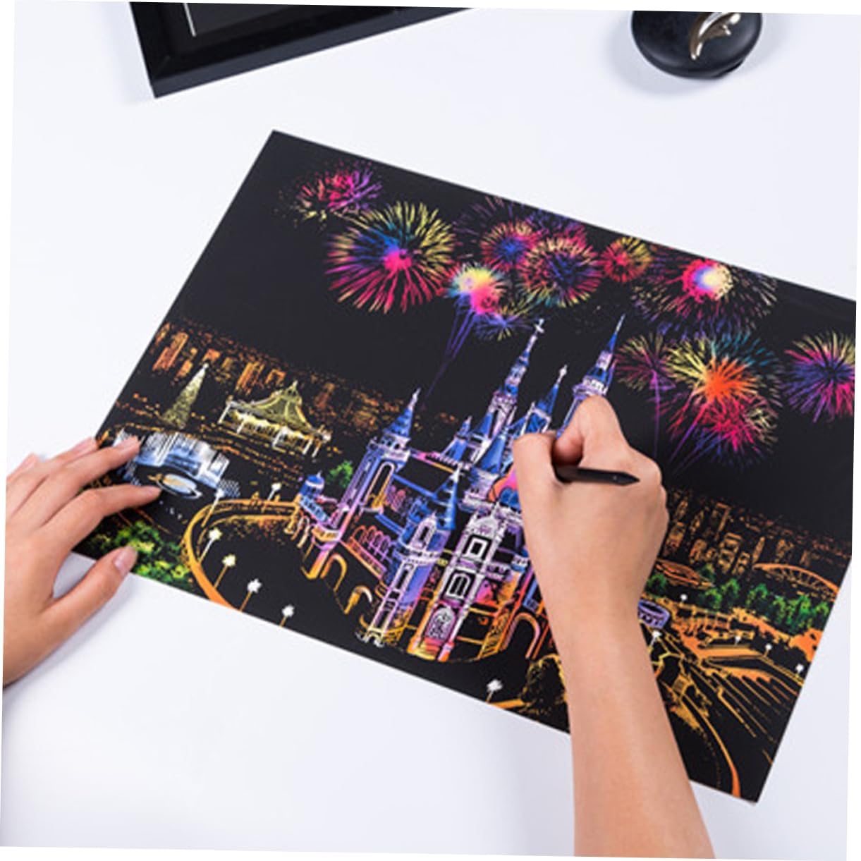 Kit per dipingere con la tavoletta grattabile: grattala via facilmente e otterrai una bellissima immagine notturna che permetterà ai tuoi di godersi momenti felici, giocattolo per Giocattoli per : un'attività divertente e divertente per far divertire di più i tuoi e farti sentire più vicino a loro, giocattolo da schizzo Giocattolo: è un buon modo per allenare le loro capacità pittoriche e aiutare a coltivare la creatività artistica dei , giocattolo da schizzo Tiragraffi: è un ottimo modo per incoraggiare i a disegnare, è molto divertente giocare con i giocattoli da disegno Carta da grattare: può essere utilizzata per vari regali di festa o bomboniere, piacerà agli adulti che ai , giocattolo da disegno