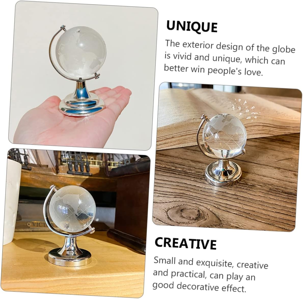 Mini globo per scrivania: il design è squisito, alla moda e versatile e può essere applicato molto bene alla decorazione dei tuoi interni, aggiungendo un'atmosfera calda e romantica, globo in stile europeo Decorazione per ufficio: con un, è compatto e pratico e ha un buon effetto decorativo, globo educativo Decorazione da scrivania: con un aspetto trasparente e un tocco morbido, è un ornamento da scrivania molto bello e pratico, ornamento da scrivania con globo geografico Decorazione del globo terrestre: il globo può essere ruotato a e a destra, il che è più vivido e interessante ed è un eccellente ornamento da scrivania, globo per scrivania Statuetta a forma di globo terrestre: questa decorazione utilizza una base solida per sostenere e bilanciare l'intero corpo e impedirne il ribaltamento, globo per ufficio