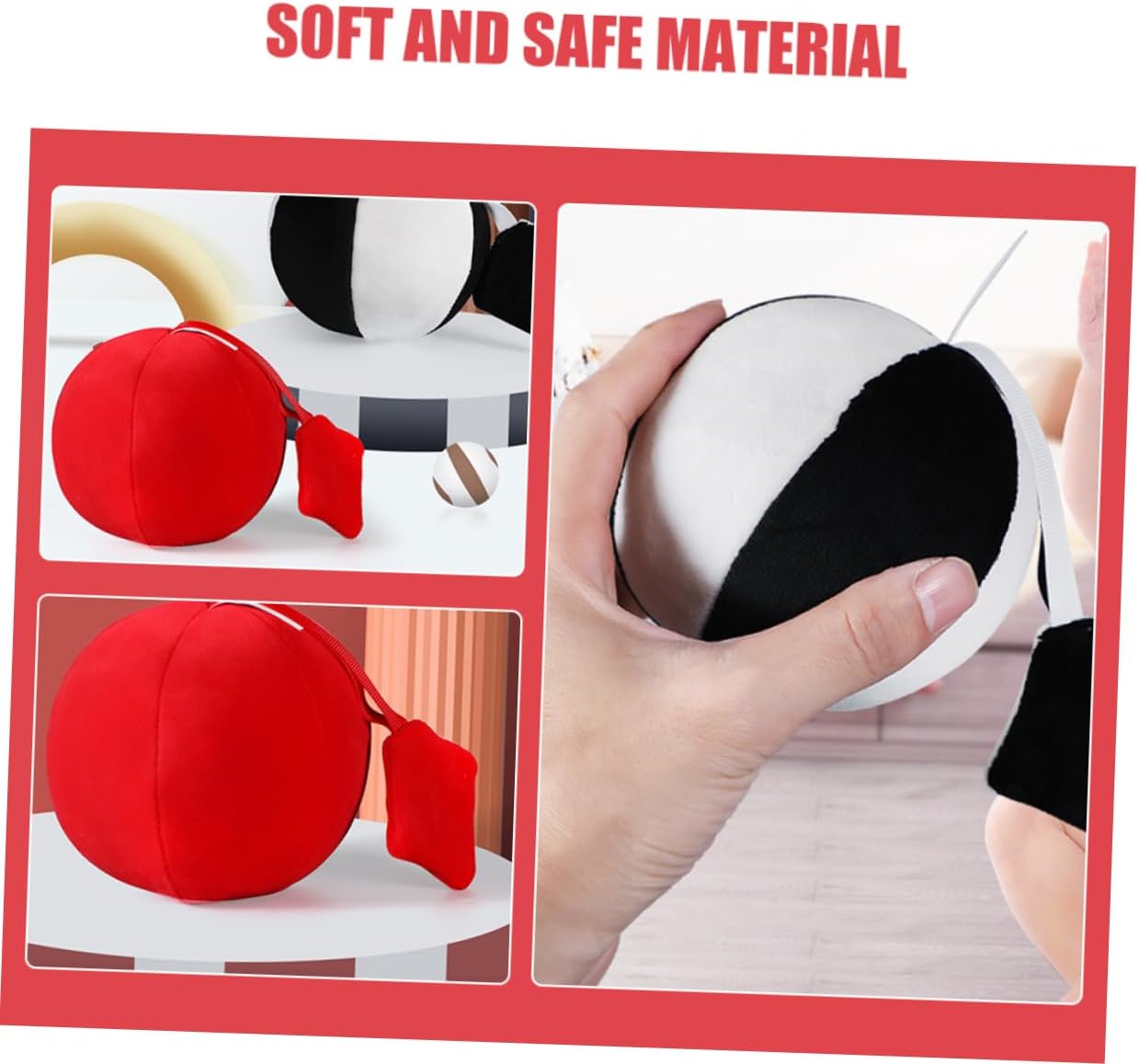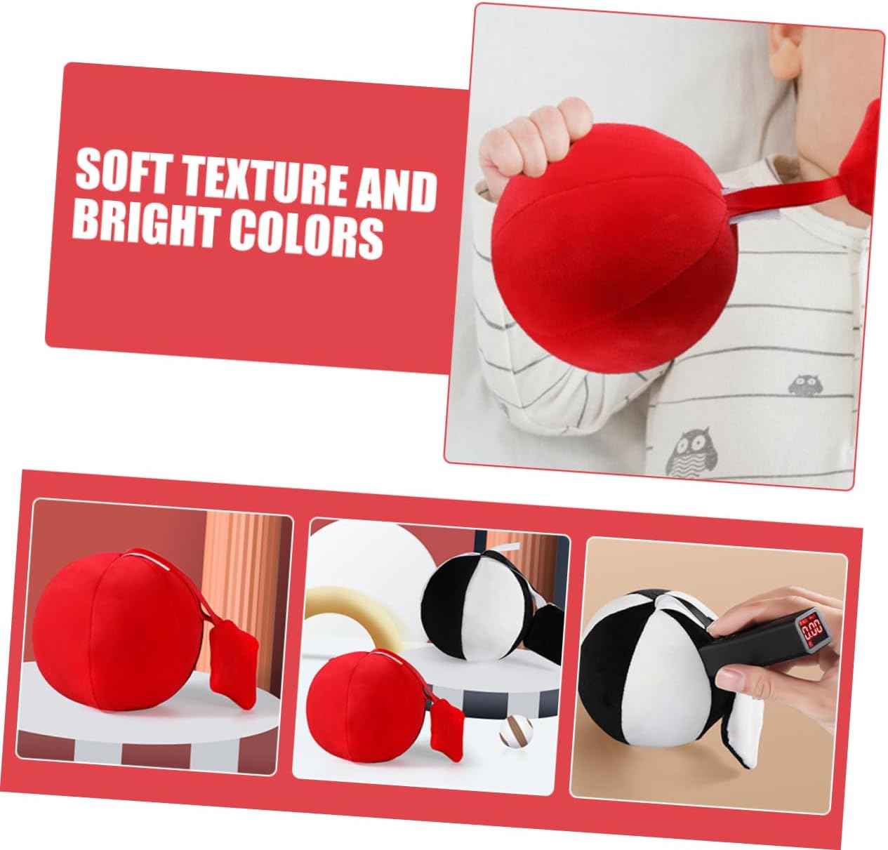 Design ad alto contrasto: la palla in tessuto per presenta un colore rosso ad alto contrasto, adatto per stimolare la vista in via di sviluppo dei neonati e incoraggiare il tracciamento visivo, giocattoli con palline per piccoli, palline montessori Sicuro per i neonati: realizzato con materiali sicuri per i , questa palla garantisce che i tuoi piccoli possano giocare in sicurezza, palline montessori, giocattoli di contrasto per neonati Adatto per il tempo sulla pancia: questa morbida palla di peluche è adatta per le attività sulla pancia, aiutando a rafforzare i muscoli del collo e delle spalle del mentre gioca, sonaglio con palla di peluche per , palla sensoriale per neonati Dalla : il materiale in tessuto morbido è delicato sulle gengive, rendendolo un'ottima palla da per i che stanno iniziando a esplorare il mondo con la bocca, giocattoli sensoriali per neonati, palla testurizzata Ispirato metodo montessori: progettato seguendo i principi montessori, questa palla promuove il gioco indipendente e aiuta nello sviluppo delle capacità motorie fini e della coordinazione occhio-mano, palla morbida montessori, palla in tessuto per