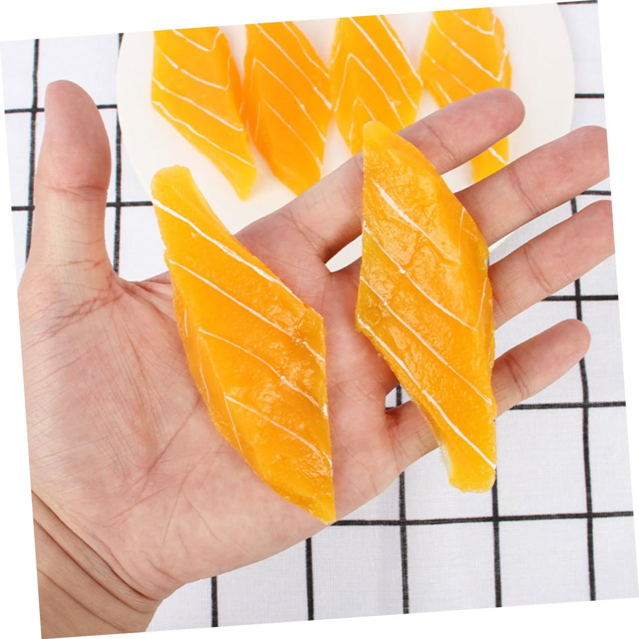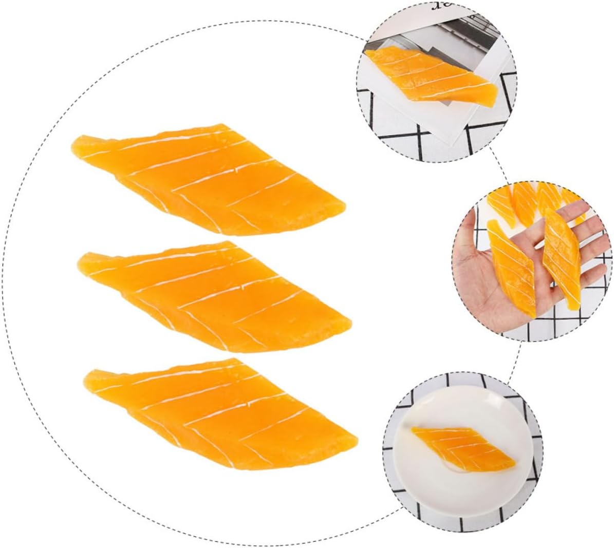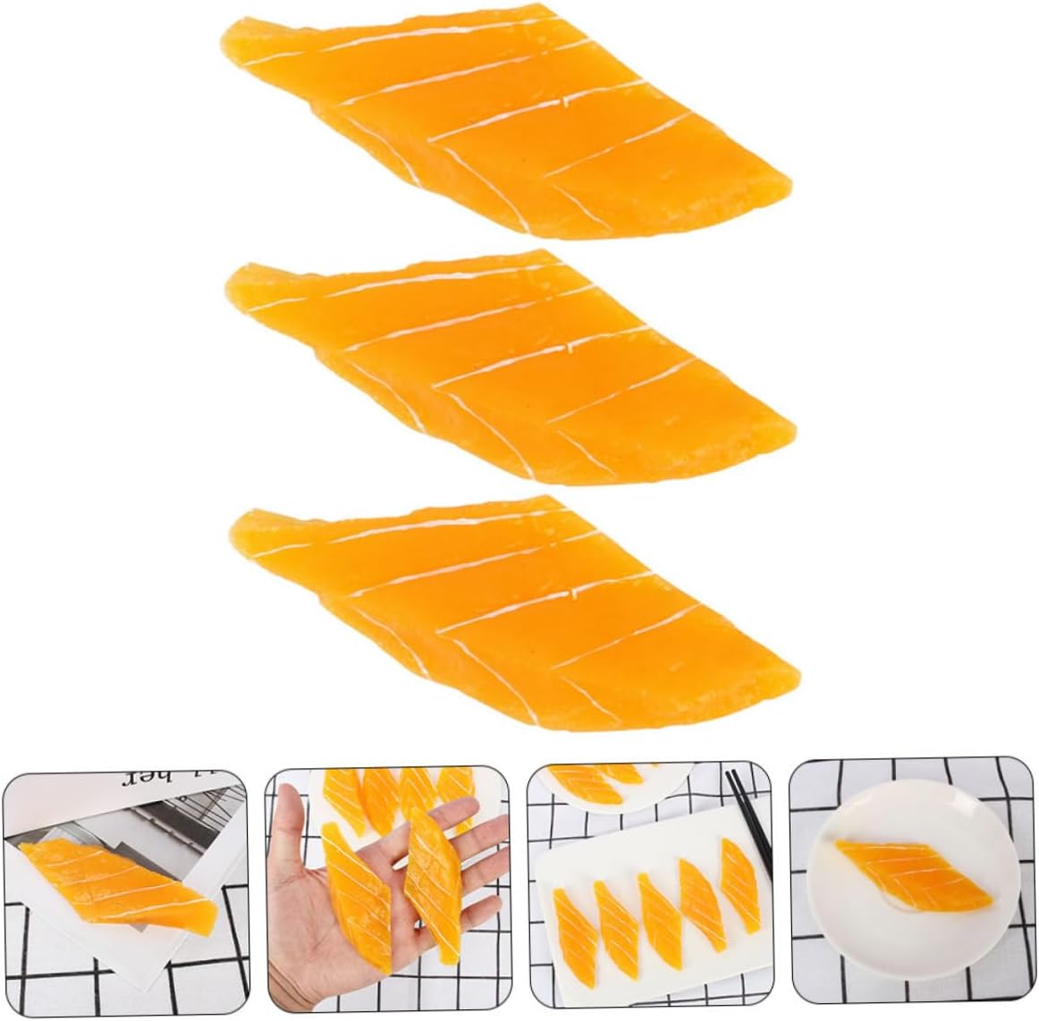 Queste fette di salmone simulate e armadietti per sushi finti sono disponibili a prezzi molto ragionevoli, rendendoli una soluzione conveniente per creare splendide esposizioni o set fotografici, cibo finto per ristoranti e cibi artificiali Decorazione alimentare artificiale - Il nostro salmone artificiale è buono per la casa, la cucina, l'esposizione del supermercato, ciotole, festival, decorazioni per feste di compleanno e come simulazione di cibo Ottimo supporto per: come supporto per la fotografia, questi oggetti simulati rendono i tuoi piatti più sorprendenti e professionali ed evidenziano ogni dettaglio della tua cucina, decorazioni alimentari per la casa, decorazioni per cibo finto Decorazione a tema alimentare - Il modello di simulazione del salmone è un buon supporto fotografico che può sostituire il vero salmone quando si scattano foto, Cibo artificiale Decorazioni di carne - Design altamente simulato, sensazione di colore vivido, Il nostro salmone artificiale è molto leggero e non sbiadisce facilmente, foraggio per oggetti di scena