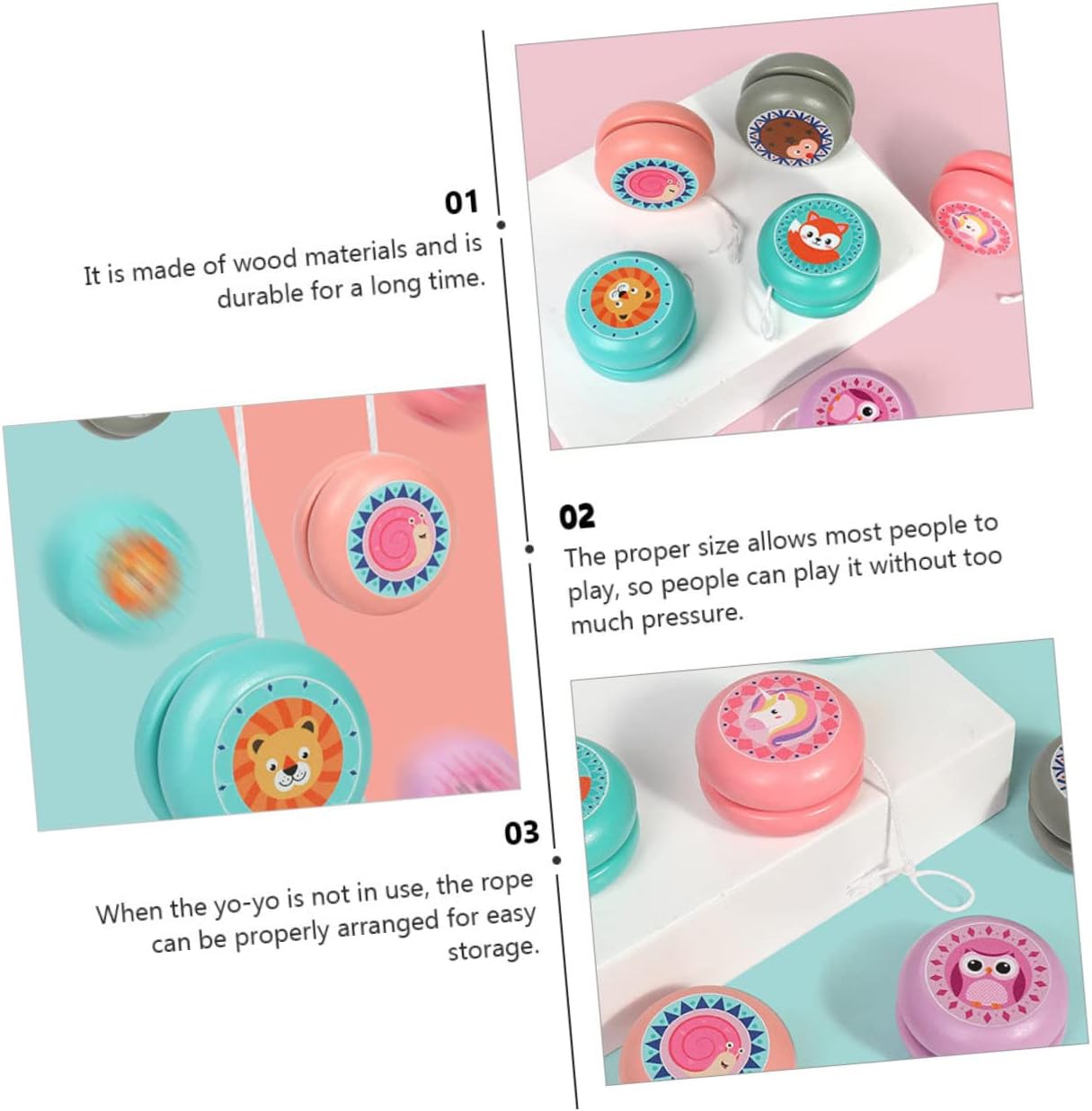 Palline yo-yo: possono aiutare i a esercitare la flessibilità dei polsi e delle dita, e diversi di giocare possono aiutarli a esercitare la memoria e la coordinazione, giocattolo con palline yo-yo Yo-yo per : realizzato con eccellente artigianale, ha un'eccellente durata e praticità, yo-yo Palline yo-yo per : i diversi colori ti permettono di avere diversi stati d'animo per giocare, yo-yo di legno Giocattoli per : le dimensioni sono adeguate, quando lo yo-yo non è in uso, può essere facilmente riposto, yo-yo a dito Giocattoli educativi per : possono essere un perfetto per i tuoi amici e familiari, giocattolo yo-yo per