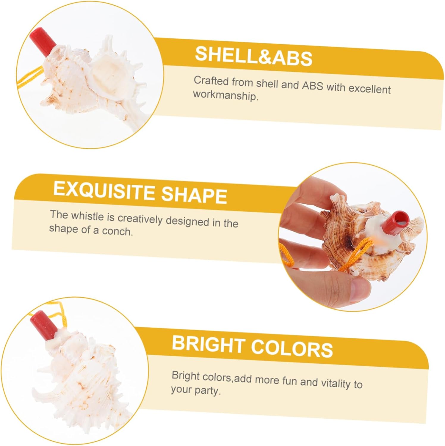 Giocattolo con pipa per bambini: design creativo a conchiglia. Ben fatto con bordi lisci, non ti farà male alla bocca e potrai giocare facilmente. Fischietti Artigianato turistico distintivo - pregevole fattura, bordi lisci e fini sono ben fatti e meno inclini a rotture, fischietti a forma di conchiglia Giocattoli per tubi per bambini - il fischietto a forma di conchiglia è fatto di materiale, affidabile e non facile da sbiadire e non si graffia o sfrega, etichette regalo Fischietti per allenamento all'aperto - il prodotto è ampiamente utilizzato in feste, giochi, intrattenimento, festival e altri luoghi, Fischietti Giocattoli con fischietti a forma di conchiglia - Il prodotto è adatto per matrimoni, Natale, compleanni, Halloween, Ringraziamento, ecc., fischietti da allenamento per il campeggio