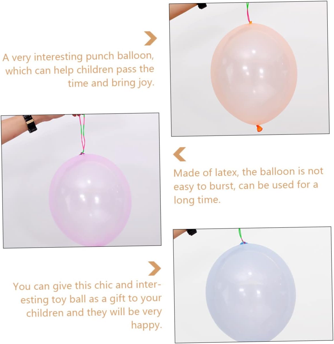 Giocattolo con palloncino in lattice: realizzato in materiale in lattice, e sicuro da usare, palloncino rotondo da perforare Giocattolo a palloncino con pacca sulla mano: i nostri palloncini sono realizzati in un materiale in lattice delicato, resistente e punch balloons prop Riempitivi per sacchetti per feste: la quantità è sufficiente e può soddisfare pienamente l'uso in varie occasioni!, palloncino in lattice slap Palloncino da pugno: regala ai bambini il divertente palloncino gonfiabile da pugno e porta loro gioia, giocattolo punch balloons Palloncini per bambini: possono contribuire ad aggiungere un'atmosfera e piacevole alle feste a tema, palloncini per bambini