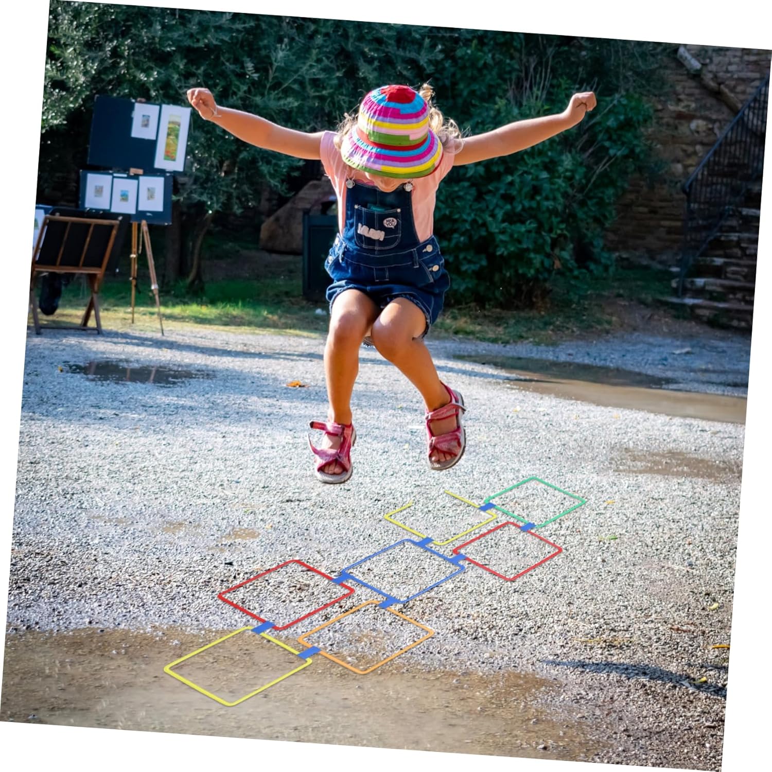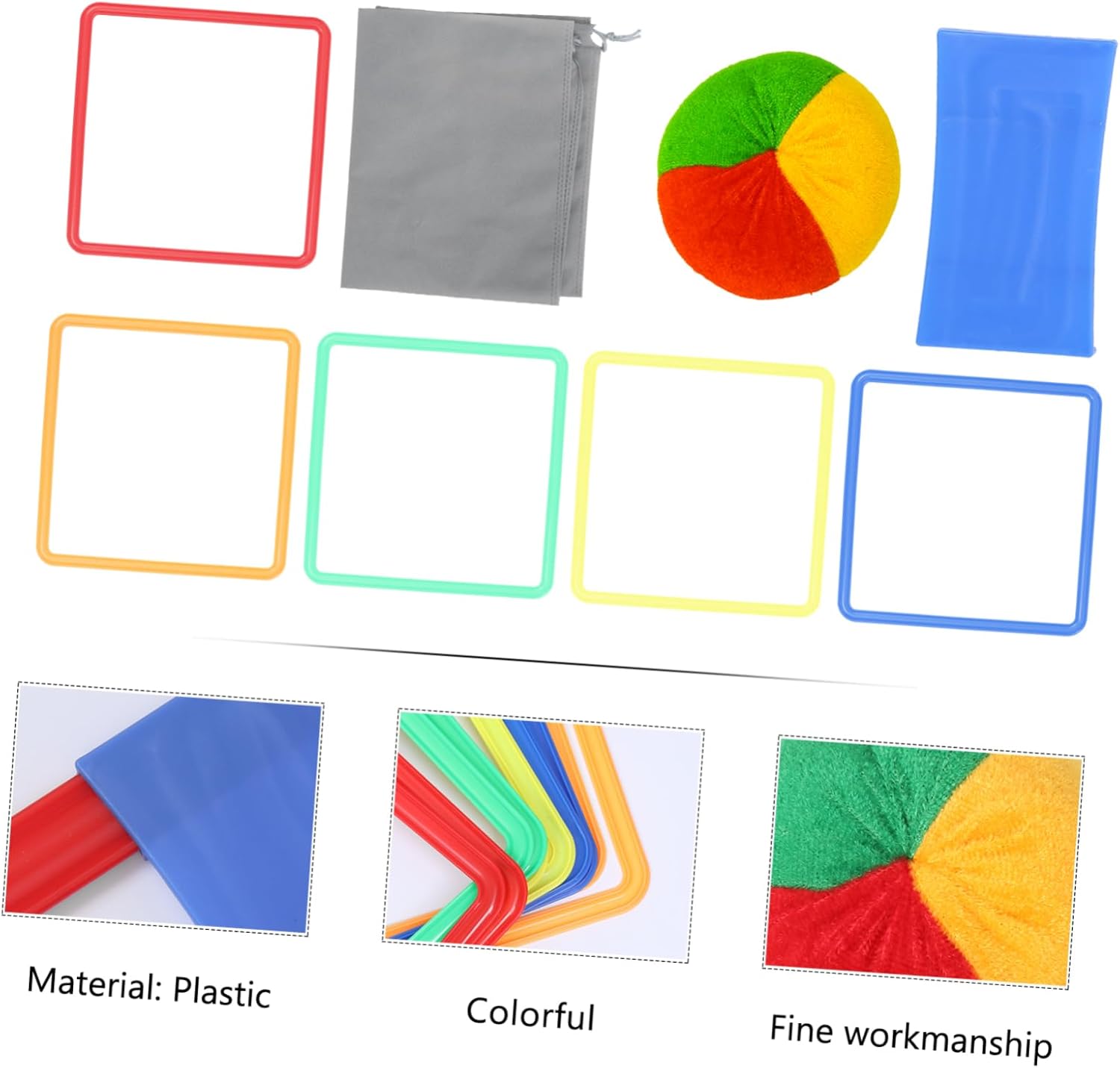 Giochi da giardino all'aperto: il set è dotato di 10 anelli quadrati multicolori e 12 connettori a scatto facili, 1 sacchetto di fagioli e 1 borsa portaoggetti, gioco dell'anello di salto Gioco ad anello in plastica: può innescare connessioni divertenti e creative tra loro, migliorando al contempo la coordinazione occhio-mano, la precisione e l'accuratezza, gioco ad anello Anelli di plastica: possono essere installati in una varietà di configurazioni, incoraggiandoti a usare la tua immaginazione per inventare nuovi di saltare e giocare, anelli di plastica multicolore Anello: fantastico per giochi di società al chiuso o all'aperto, feste di costruzione, feste di compleanno, feste di carnevale, feste di auto, giochi con sacco di fagioli, giochi di famiglia, giochi da spiaggia, ecc., gioco ad anello di plastica Gioco per: il set è facilmente trasportabile per uso o esterno, è l'attività per giocare nei giorni di pioggia in soggiorno, camera da letto o sala giochi, così come per divertirsi nel cortile, o marciapiede anteriore, gioco ad anello di plastica