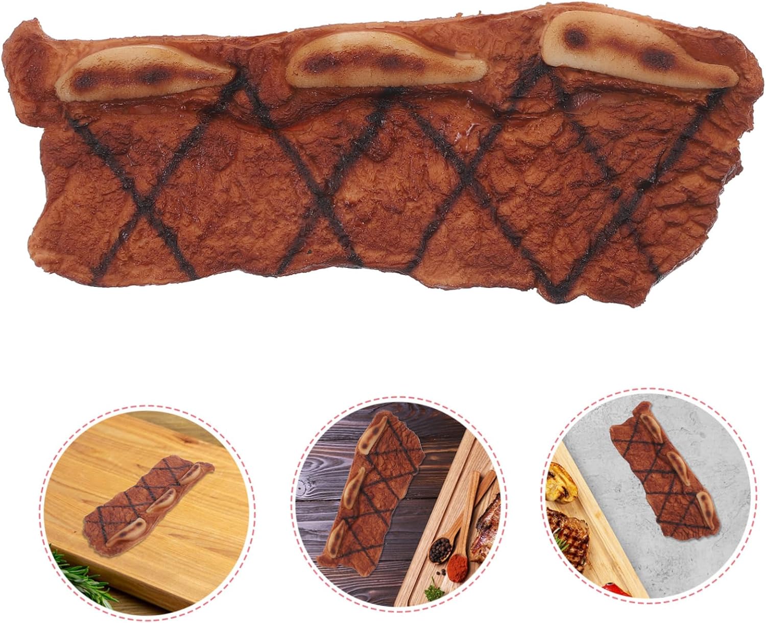 Cibo artificiale realistico: questo modello di carne artificiale è realizzato in materiale PVC, il sostegno di carne artificiale è sicuro da usare, può essere usato ripetutamente, modello di carne da cucina Carne artificiale: utilizzata per modelli alimentari, oggetti di scena fotografici, oggetti di scena cinematografici e televisivi, decorazioni di macellerie, ecc., oggetti di scena di carne artificiale Oggetti di scena di bistecca finta: adatti a ristoranti, hotel, musei. Il modello di carne artificiale è molto adatto come oggetto di gioco, come bistecca giocattolo. Oggetti di scena di simulazione: simulazione del modello di manzo, può essere utilizzato come oggetto di scena, oggetto fotografico, giocattolo o modello di carne artificiale Decori di bistecca artificiale: attraverso l'uso di materiale in PVC, la bistecca artificiale è resistente alla corrosione e non facile da strappare, un modello di carne artificiale realistico.