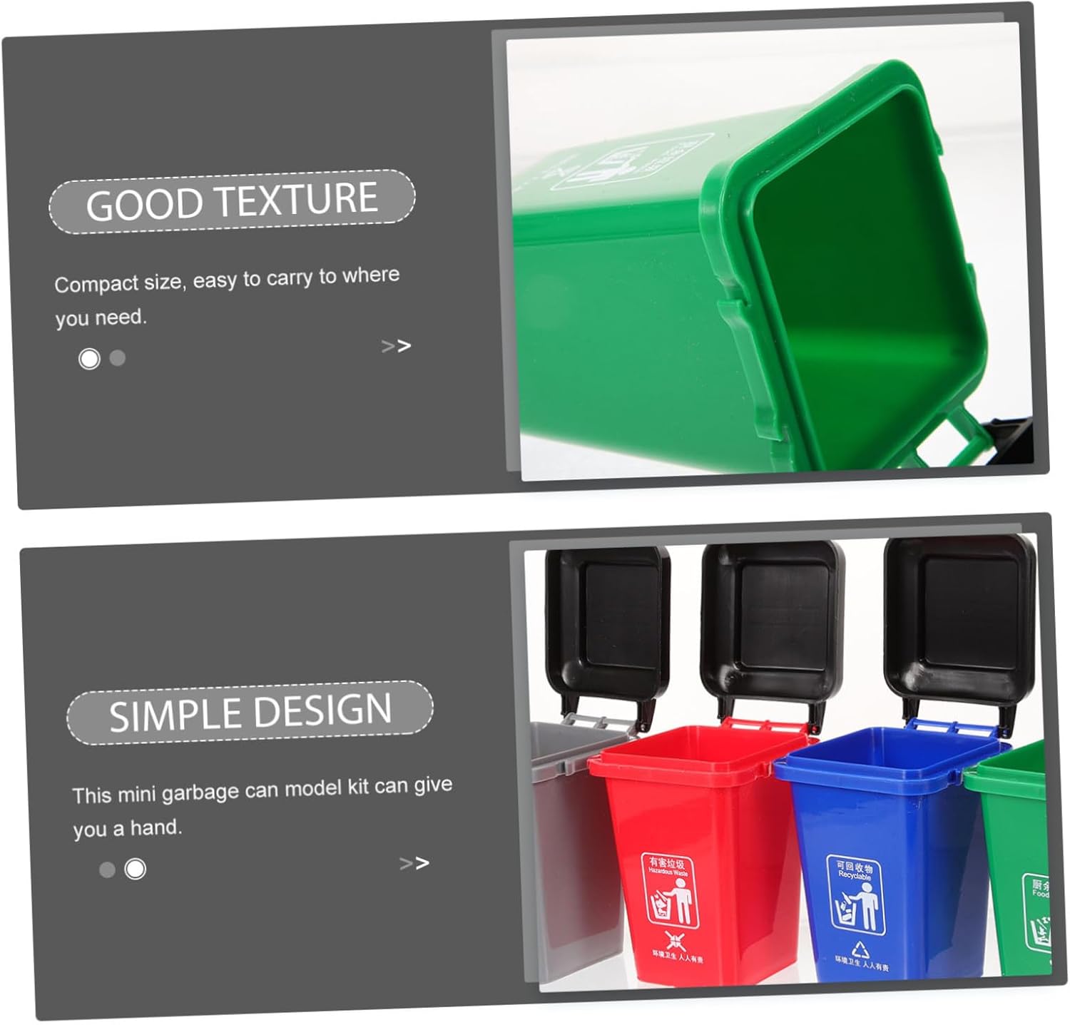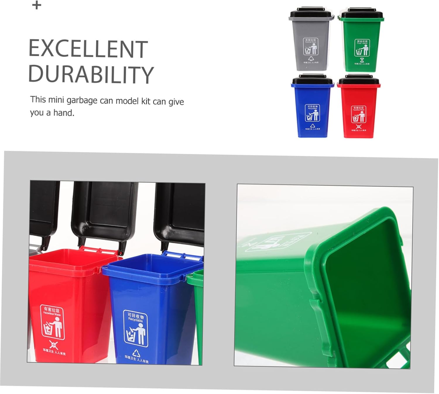Bidoni della spazzatura da tavolo: sono dotati più bidoni della spazzatura per incoraggiare la raccolta differenziata diversi tipi rifiuti, piccolo bidone della spazzatura Mini cestino della spazzatura: fornisce segnali evidenti per la classificazione dei rifiuti, migliora la capacità memorizzazione dei , cestino della spazzatura giocattolo Mini cestino: è splendidamente realizzato e realistico, può decorare meravigliosamente la mini stanza, cestino da scrivania Mini bidoni della spazzatura: design del bidone della spazzatura in miniatura, pieno divertimento, è e decorativo, dalla forma realistica, può essere , mini bidone della spazzatura da scrivania Bidoni della spazzatura: la lavorazione può rendere la miniatura più accattivante, puoi anche usarla per contenere alcuni mini gadget, bidoni della spazzatura