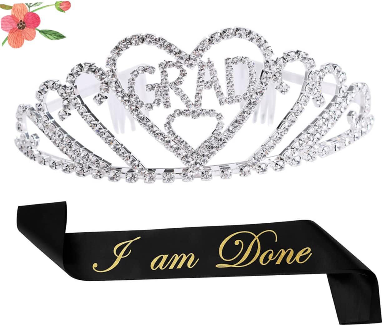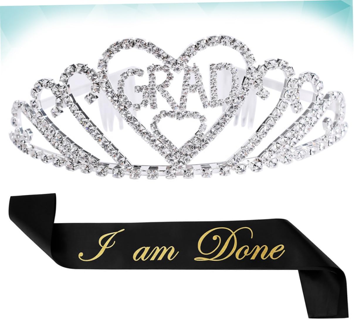 Costume da festa di laurea: adatto a tutti i tipi di feste di laurea o banchetti, corona per la laurea Copricapo da laurea: realizzato in materiale per uso pratico, corona per la laurea Corona da festa di laurea: include una corona e una cintura di etichetta, corona per la laurea Corona di laurea: indossa questa corona e una cintura di etichetta per ravvivare la tua festa di laurea, corona di festa di laurea Cintura per etichetta di laurea: la corona con bella e brillante decorazione di strass ti rende più elegante e attraente, corona per la laurea