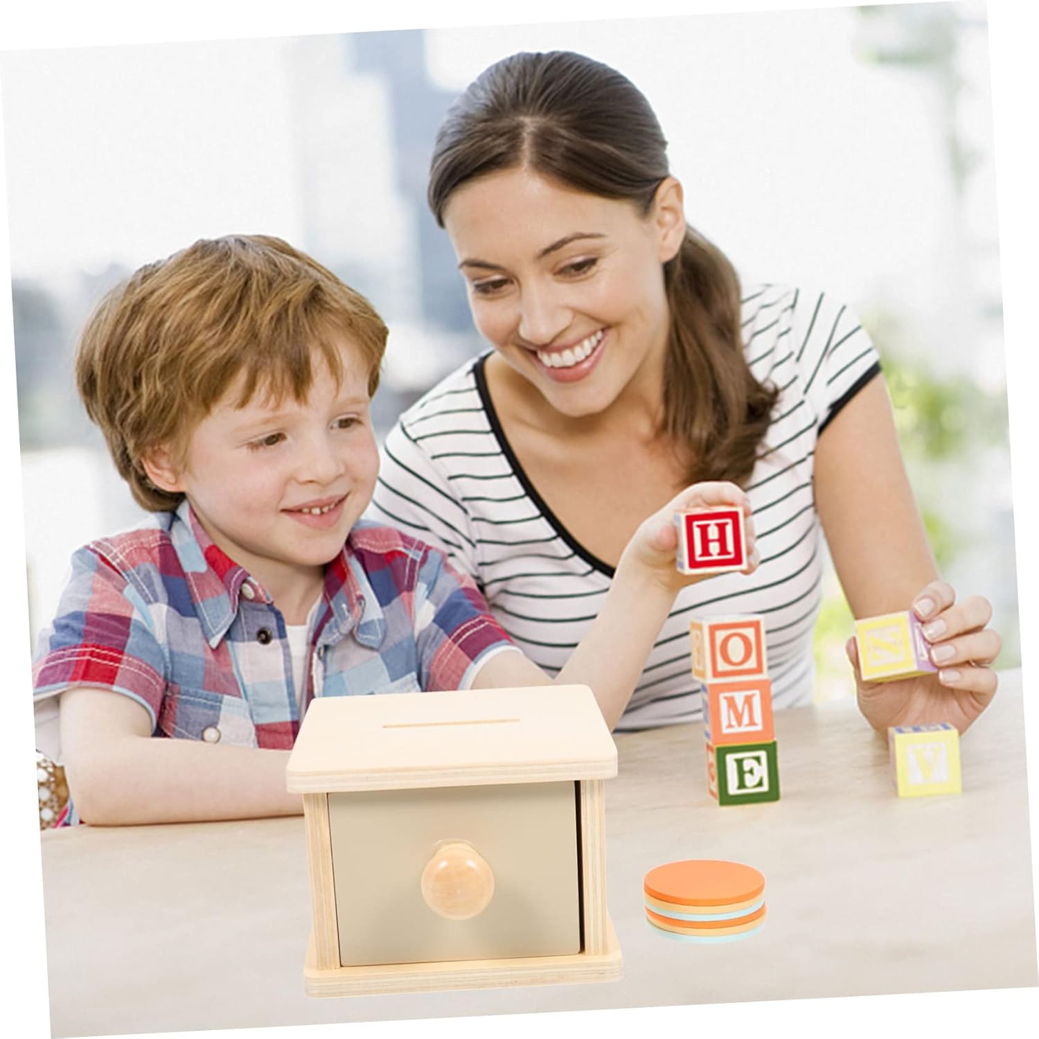 Montessori - Questa scatola è sicura ed educativa, un fantastico giocattolo di apprendimento per te e il tuo bambino, Montessori per i più piccoli Montessori per i più piccoli - Questa scatola pratica movimenti precisi della mano mentre invia informazioni e sviluppa il controllo della mano e delle dita. Giocattolo educativo per sorter di forme Montessori per - Questo giocattolo per bambini può promuovere la coordinazione occhio-mano e migliorare le capacità motorie fini inserendo/azionando le palline. Giocattolo con monete Montessori per - permette al bambino di sperimentare che le palline non scompaiono, giocattolo di smistamento per i più piccoli, giocattolo per la motricità per - in legno, senza spigoli vivi, liscio e senza sbavature, una buona idea regalo per neonati e bambini, giocattolo educativo per