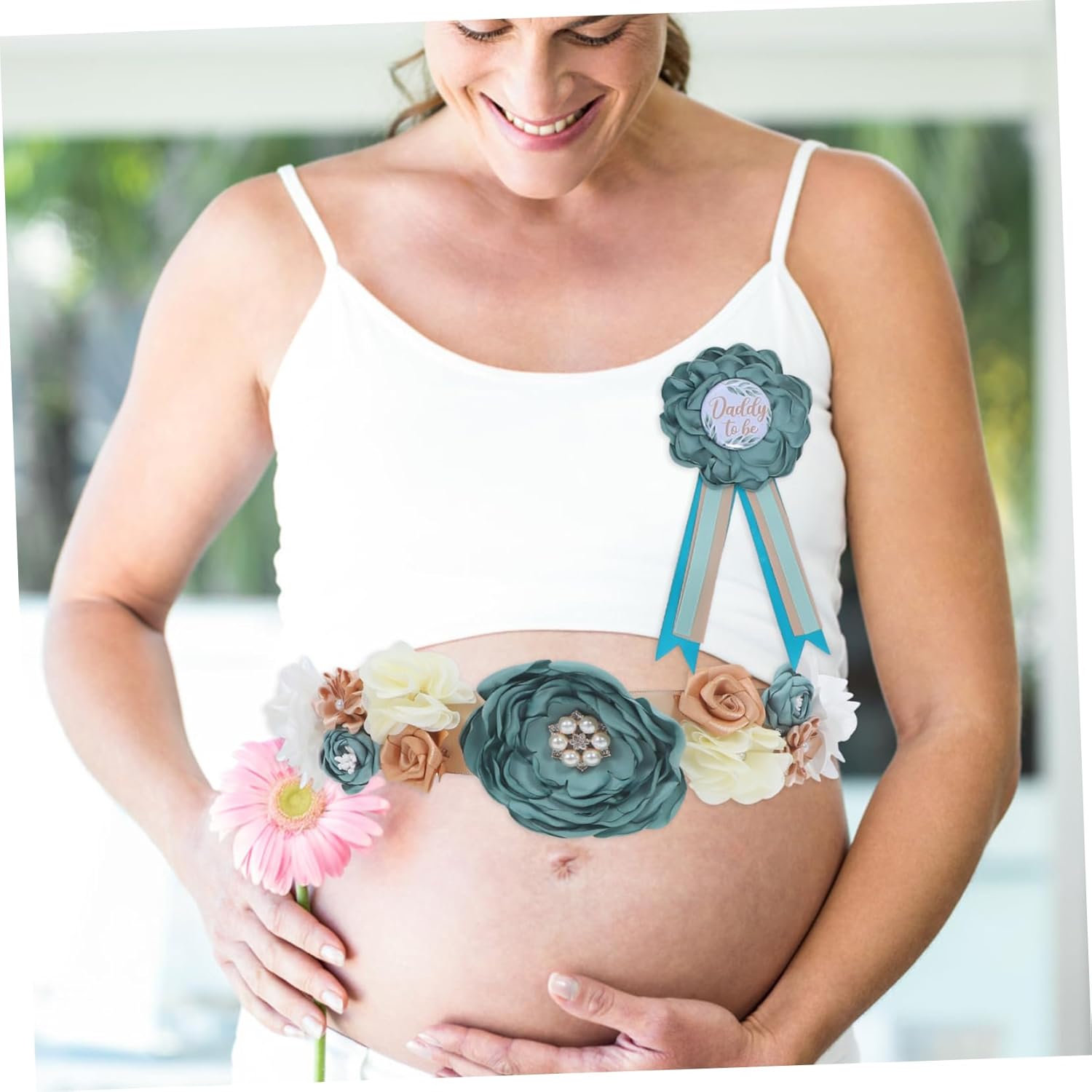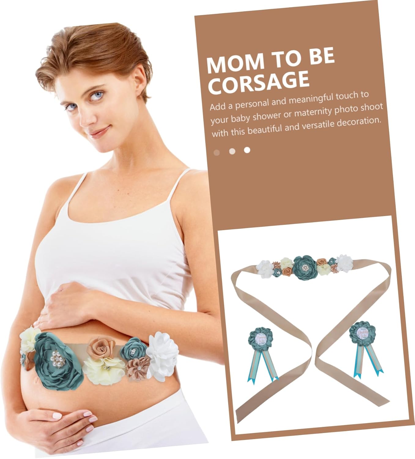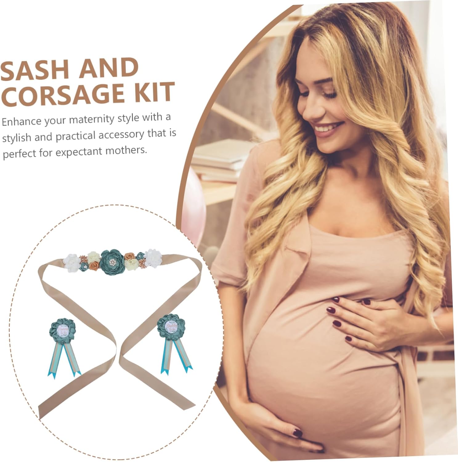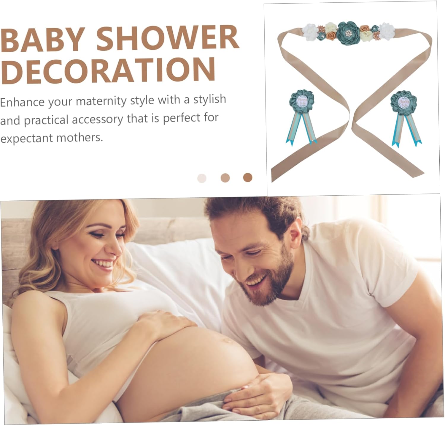 Distintivo del papà: il materiale morbido utilizzato nella fascia garantisce comfort alla futura mamma, fasce per shower per la mamma Fascia per shower per la mamma: taglia adatta, adatta a diverse corporature, assicura una vestibilità adatta a ogni futura mamma, fascia per shower per la mamma Fiore per il papà: il colore della fascia crea un'atmosfera calda e invitante, perfetta per shower e matrimoni, decorazione per fascia per shower Cintura premaman: questo set è perfetto per chi vuole distinguersi durante shower e matrimoni, per shower Accessori per foto shower: buona fattura, il kit fascia shower non è facile da strappare, può essere riutilizzato, fascia per la futura mamma