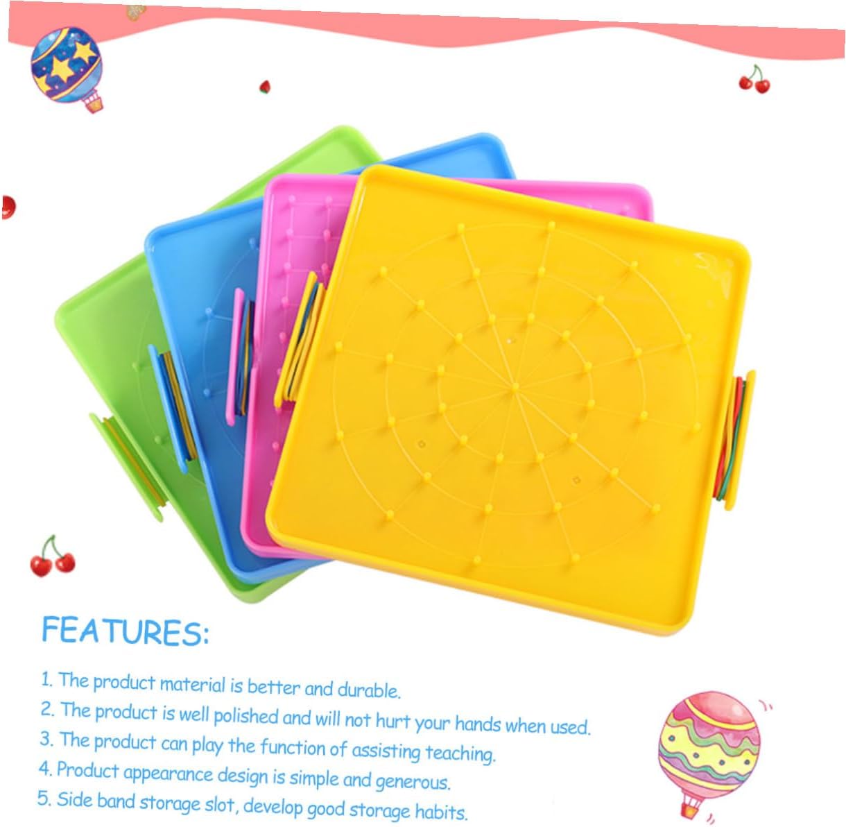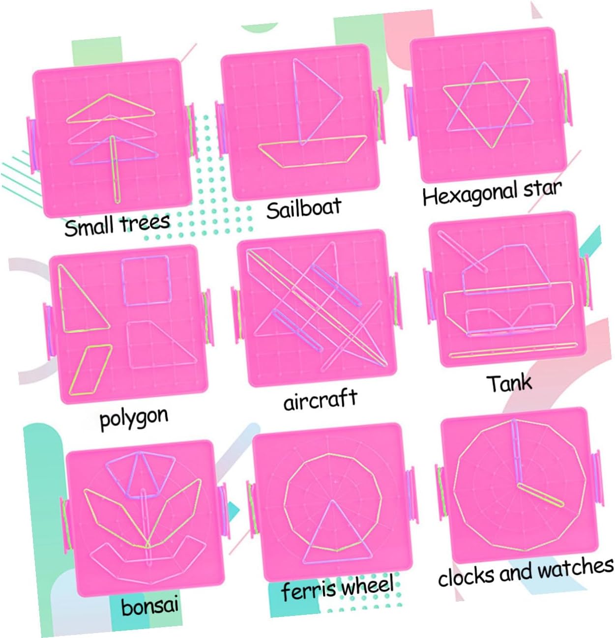 Geoboard: sul lato del prodotto è presente uno spazio per riporre gli elastici, per sviluppare una buona abitudine di conservazione, geoboard per in età prescolare Geoboard in plastica: è realizzato in plastica qualificata, durevole e sicuro da usare, geoboard in plastica Miglioramento della matematica: progettato per aiutare i ad afferrare i concetti matematici di base attraverso coinvolgenti attività pratiche, geoboard scolastico, geoboard di plastica Tavole geometriche in plastica: possono anche aiutare i tuoi a imparare la matematica della scuola elementare e le forme geometriche Materiale durevole: realizzato in plastica, che garantisce longevità e sicurezza per i durante il gioco, geoboard in plastica, geoboard
