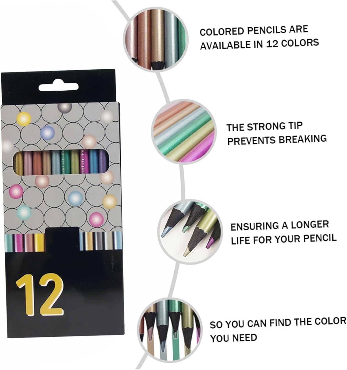 Matite colorate: realizzate con materiali durevoli, le vernici aiutano a dare colori forti al dipinto senza sbiadire, matite colorate graffiti Matite colorate per schizzi: il contorno si adatta comodamente alla mano, esperienza di disegno fluida, matite colorate Matite colorate per schizzi cancellabili: le matite colorate sono disponibili in 12 colori, trova il colore che ti serve, matite colorate per bambini Matite colorate per dipingere: il design ergonomico garantisce una presa comoda, matita colorata per disegnare e colorare Matite colorate vivaci: ha un design semplice ma è molto pratica da usare e ti offre molta comodità. matite colorate metallizzate