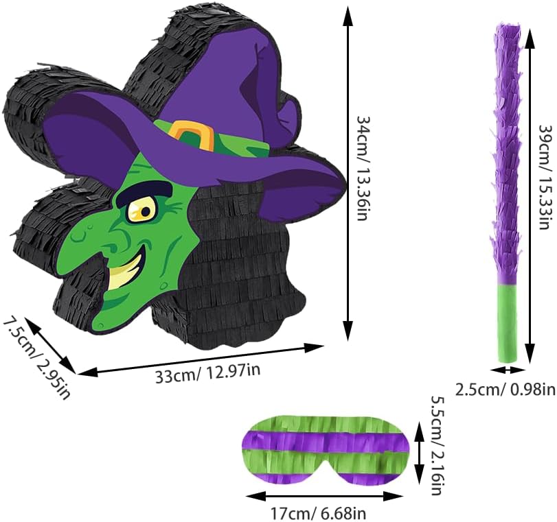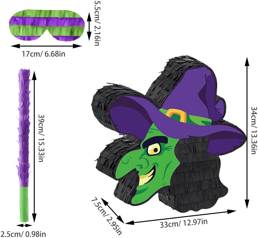 Accattivante tema strega: l'esclusivo design da strega con dettagli a coriandoli rende questa piñata un centrotavola perfetto per feste ed eventi di Halloween Set per feste: include una benda e hai tutto il necessario per un gioco di piñata che possa far divertire gli ospiti di tutte le età Robusto e affidabile: realizzata con materiali di prima qualità, questa piñata è costruita per durare durante l'eccitazione dei giochi e delle attività di società Versatilità decorativa: appendila nel tuo salotto, nella tua camera o nel luogo della festa per creare un'atmosfera festosa e spettrale per la tua celebrazione di Halloween Divertimento per tutti età: adatta ai bambini, questa piñata aggiunge un elemento di sorpresa e sorpresa a qualsiasi festa o incontro