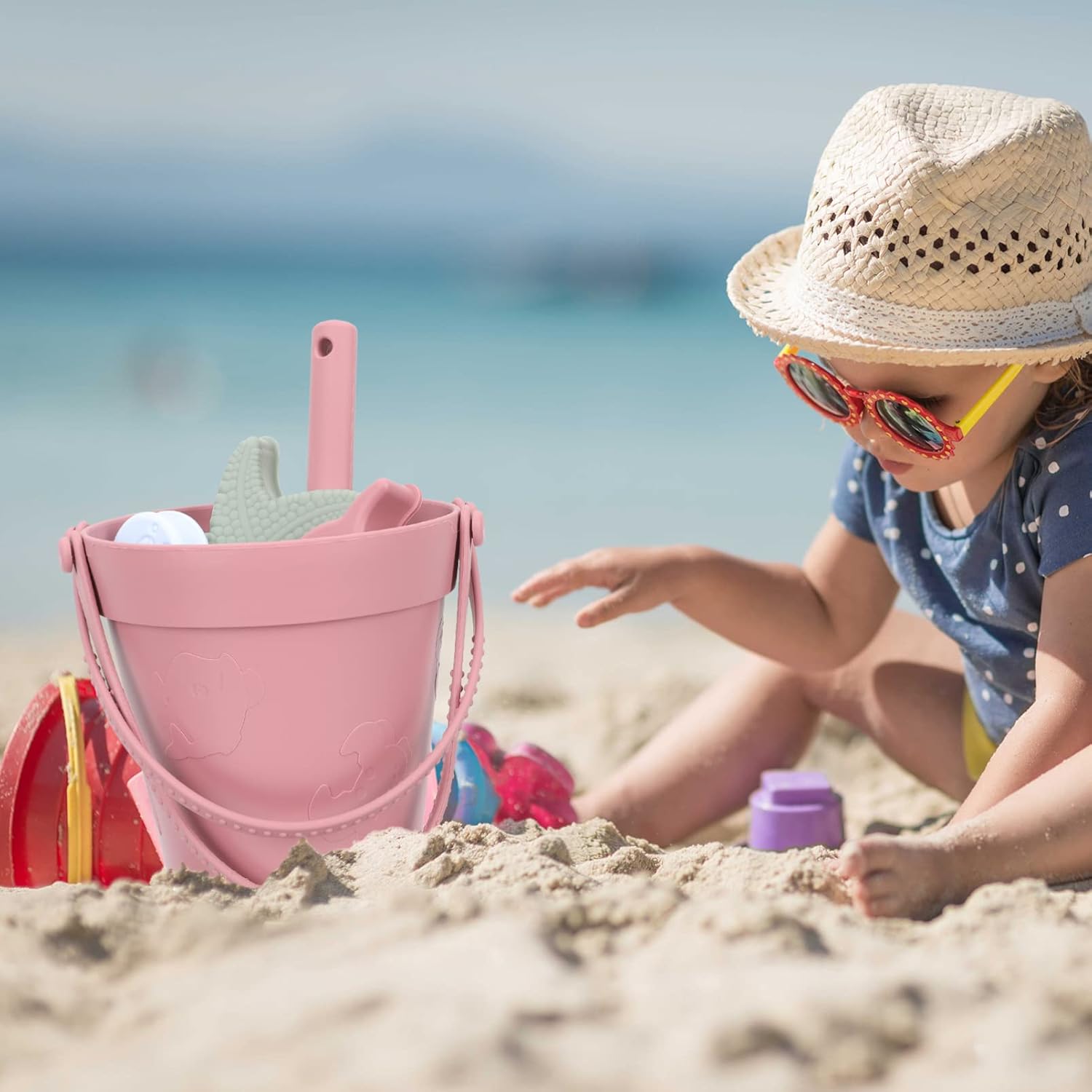 Strumenti per scavare la spiaggia: il design creativo e interessante può aiutare i bambini a divertirsi molto bene, è uno strumento molto pratico per scavare i bambini, Kit secchiello da spiaggia per bambini: non solo può fornire intrattenimento, ma anche esercitare l'abilità pratica dei bambini, Strumenti per scavare la sabbia per bambini Giocattoli da esterno per bambini: realizzati con materiali siliconici, sicuri e, i bambini possono usarli con sicurezza, Strumenti da spiaggia per bambini Giocattoli da spiaggia: Ha una moltitudine di applicazioni senza troppe restrizioni, una scelta per giochi da spiaggia, giochi in giardino, sabbiere, attività scolastiche, ecc., attrezzi da spiaggia Secchio Pala: perfetta per i bambini, promuove l'abilità pratica e la capacità di coordinazione dei bambini, scavando giocattoli per i più piccoli