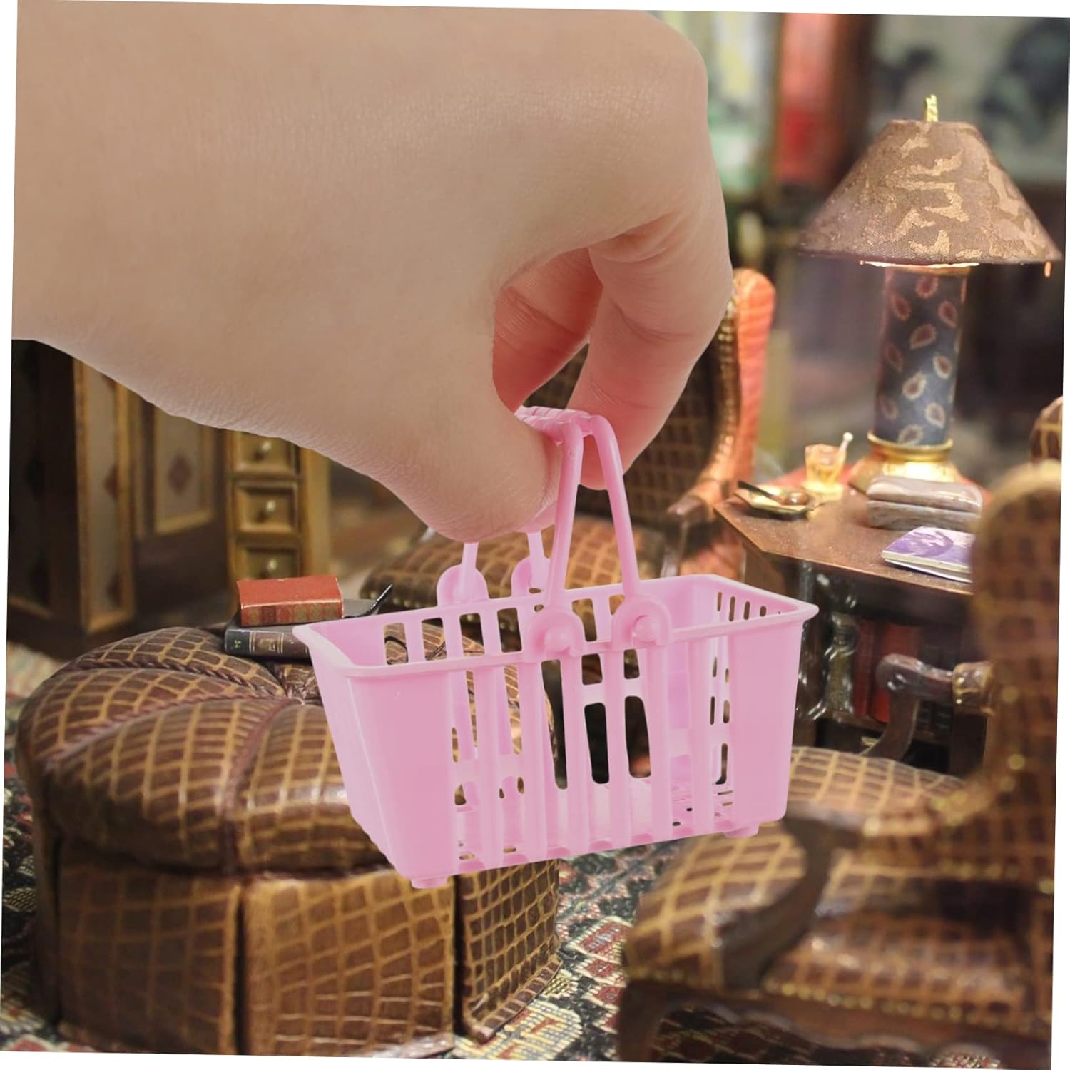 Cestino in miniatura - posiziona il cestino portaoggetti in miniatura nella tua mini casa per dettagli più realistici, decorativi e utili, cestino portaoggetti per piccole case delle bambole Mini cestino della spesa - per coloro che amano la mini casa fai da te o la decorazione del micro paesaggio, effetto decorativo, cestino piccolo Mini cestino della spesa per bambini - puoi usare questo cesto portaoggetti in miniatura per aggiungere divertimento alla tua mini casa, rendendola più raffinata, piccoli cestini di plastica Cestino piccolo con manico - con dettagli, piccolo e delicato, può essere decorato con altri mini oggetti creativi, cestino dei giocattoli Piccolo cestino dei giocattoli - realizzato con materiali plastici sicuri, con buona durata, utile e può servirti bene, mini cestino portaoggetti