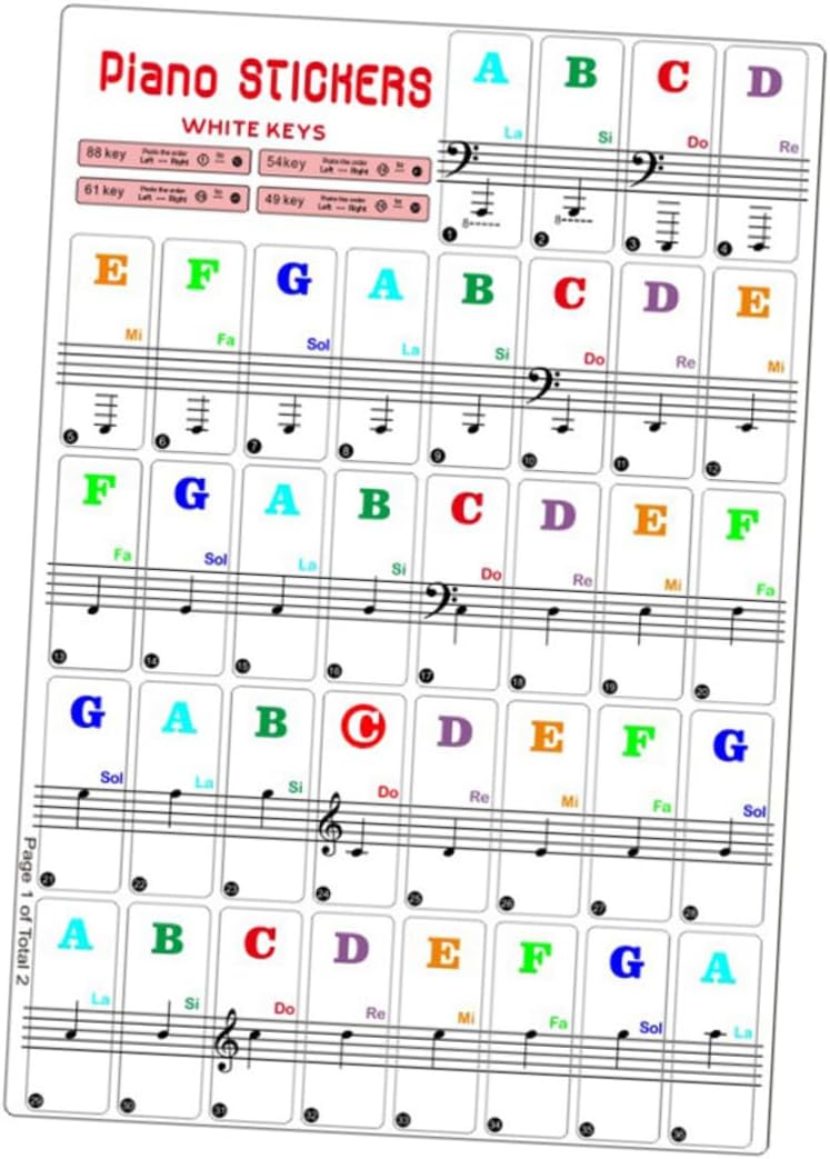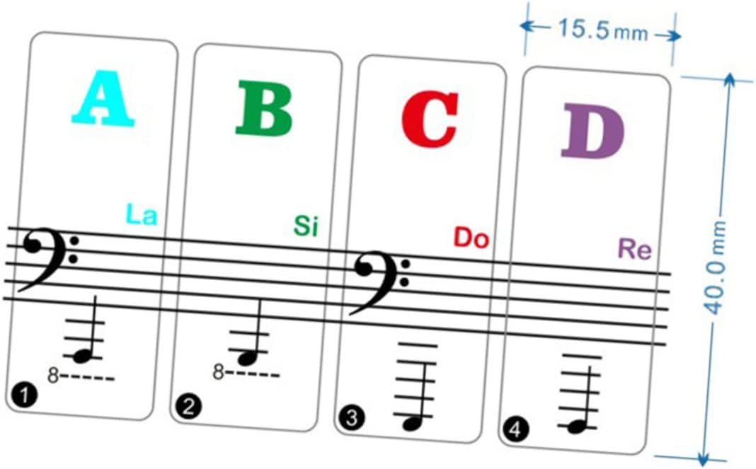 Adesivi per tastiera di pianoforte - con semplici istruzioni e applicazione per poterli applicare in pochi minuti, adesivi per organo elettronico Adesivi per tasti di pianoforte - facilitano l'apprendimento del pianoforte, accessorio perfetto per principianti di organo elettronico, adesivi per organo elettronico Adesivi per organo elettronico - realizzati in materiale durevole e sicuro, adesivi per tastiera elettronica Adesivi per tasti di pianoforte - facili da applicare, rimuovere e riutilizzare senza lasciare danni o residui, adesivi per tastiera elettronica Adesivi per organo per tastiere elettroniche - Gli adesivi per i tasti del pianoforte sono stampati in modo chiaro e proteggono gli occhi, adesivi per organi elettronici