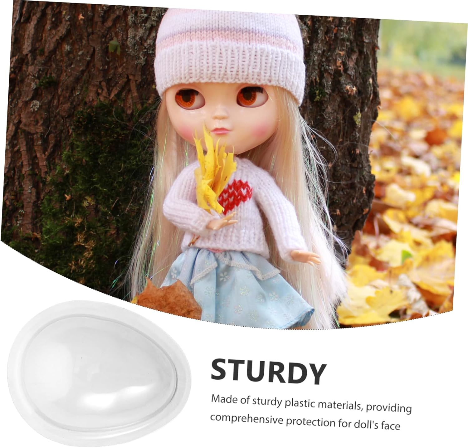 Plastica: realizzata con materiali plastici pratici e di qualità. il design trasparente la mantiene anche in buone condizioni, mini maschera per bambole trasparente, mini maschera per bambole Forniture fai da te: adatte per lavori fai da te con bambole, da mantenere in buone condizioni e da posizionare sul tavolo, mini maschere per giocattoli, copertura trasparente per il viso di bambola Protezione per il viso della bambola: progettata specificamente per le bambole, questa maschera protegge efficacemente il trucco e le ciglia della bambola da eventuali danni, maschera trasparente per il viso delle bambole, accessorio per maschera per il viso della bambola Supporto per l'applicazione del trucco: ideale per l'uso durante le sessioni di trucco, impedisce trucco di contaminare il viso della bambola, maschera di protezione per il viso della bambola, copertura per il viso in plastica Protezione completa del viso: realizzata appositamente per le bambole, questa maschera offre una protezione completa per il trucco e le ciglia della bambola, maschera artigianale per bambole di plastica, maschere fai da te per bambole