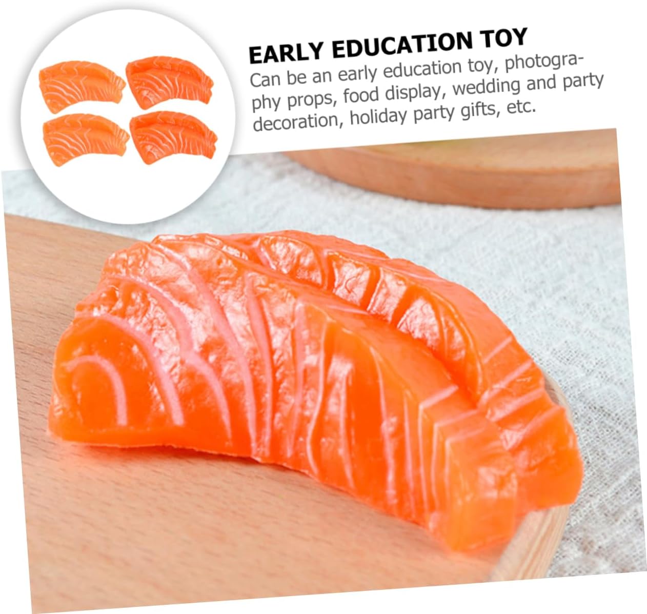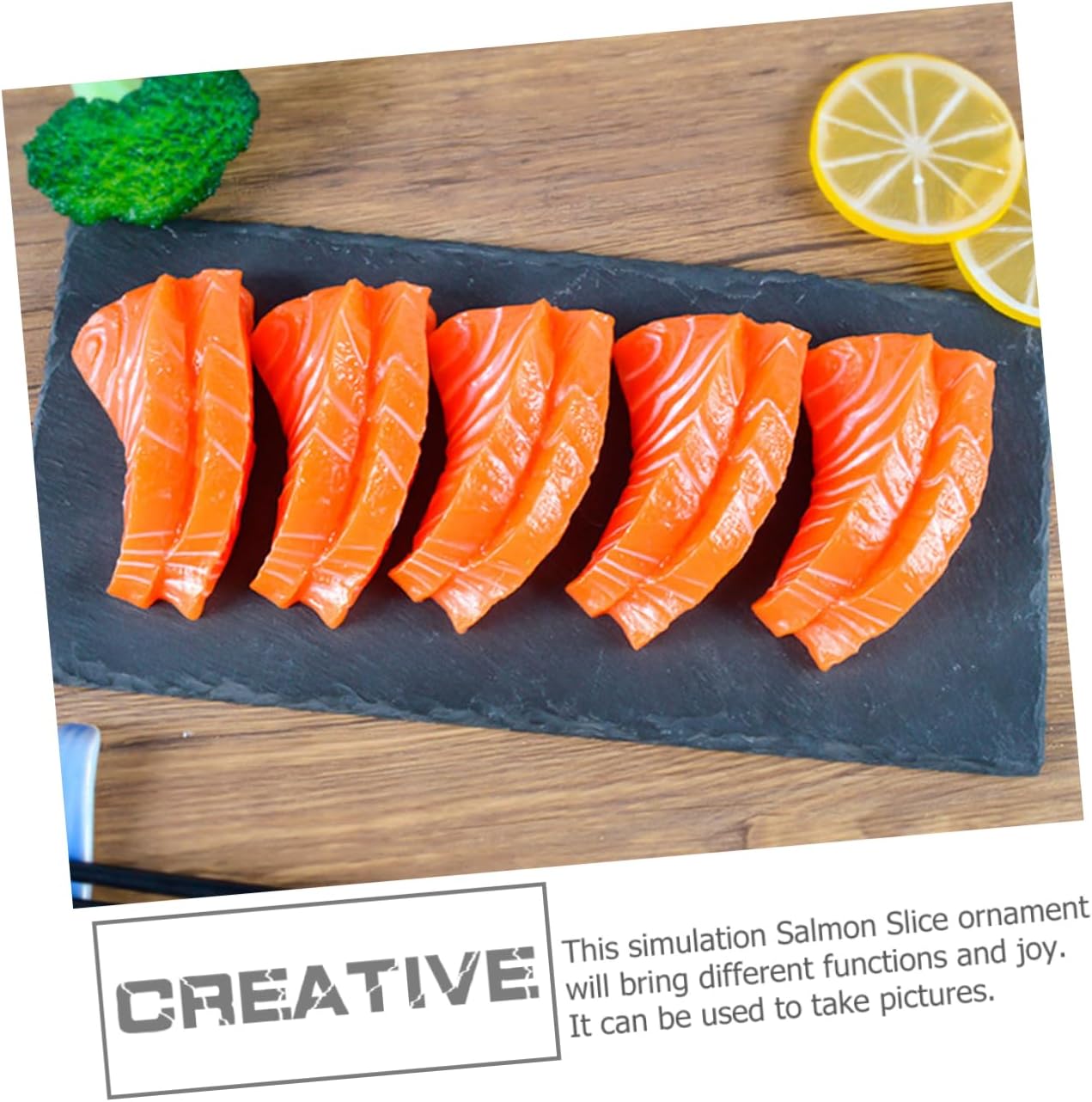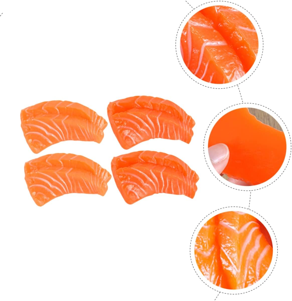 Cibo simulato: l'aspetto e il design realistico sono molto attraenti e decorativi. Il modello di carne di pesce artificiale è molto squisito, modello di cibo finto Cibo artificiale: ottima decorazione di salmone simulato per centro commerciale, casa, snack bar o cibo simulato Modelli di cibo simulato: realizzati con materiale in PVC, sono facili da usare, puoi usarli facilmente, cibo simulato Modello di cibo finto: la fetta di salmone artificiale può essere utilizzata e conservata per lungo tempo senza danni, cambia colore, cibo simulato Modelli di cibo artificiale: adatti a casa, ristorante, macelleria, salone, hotel, ecc., cibo simulato