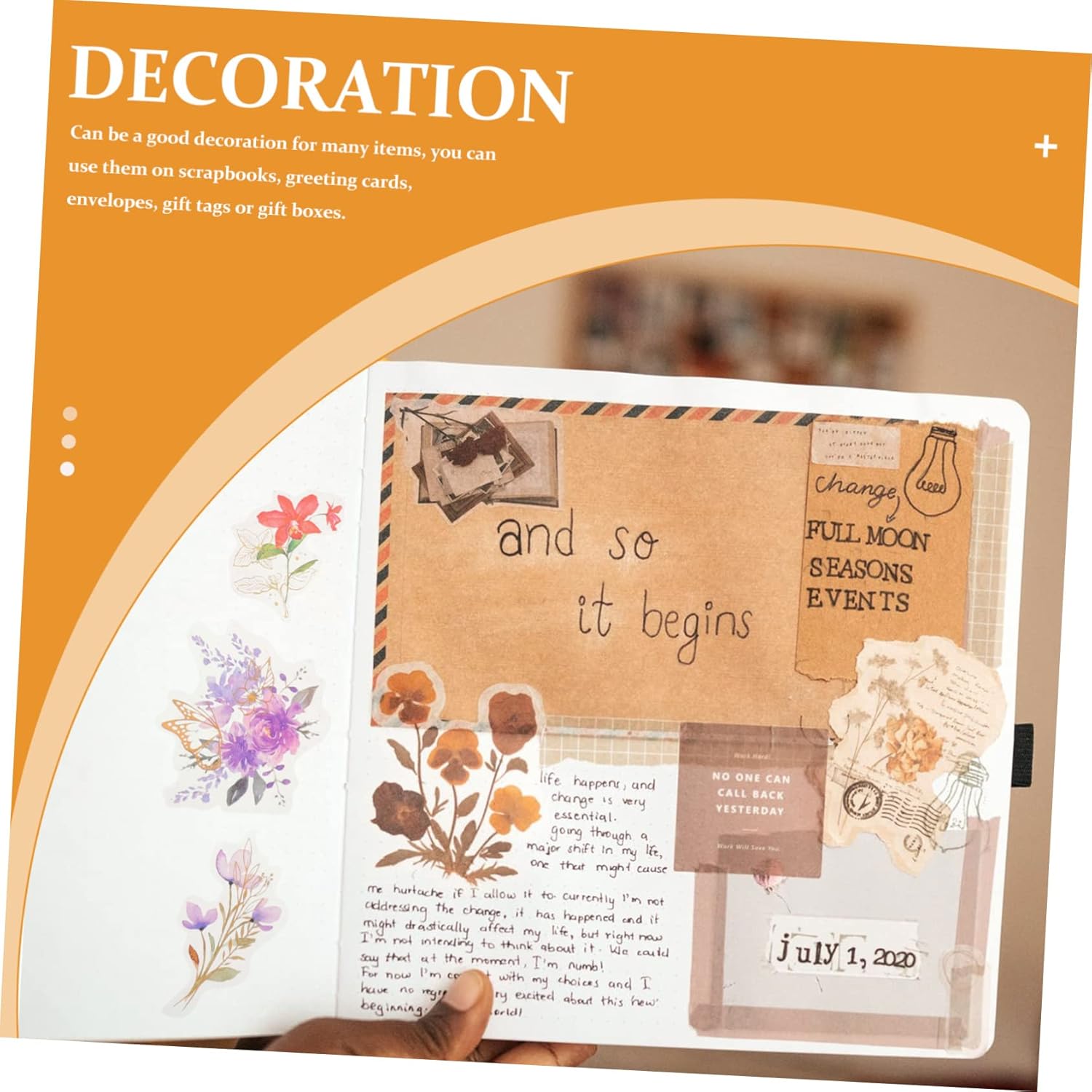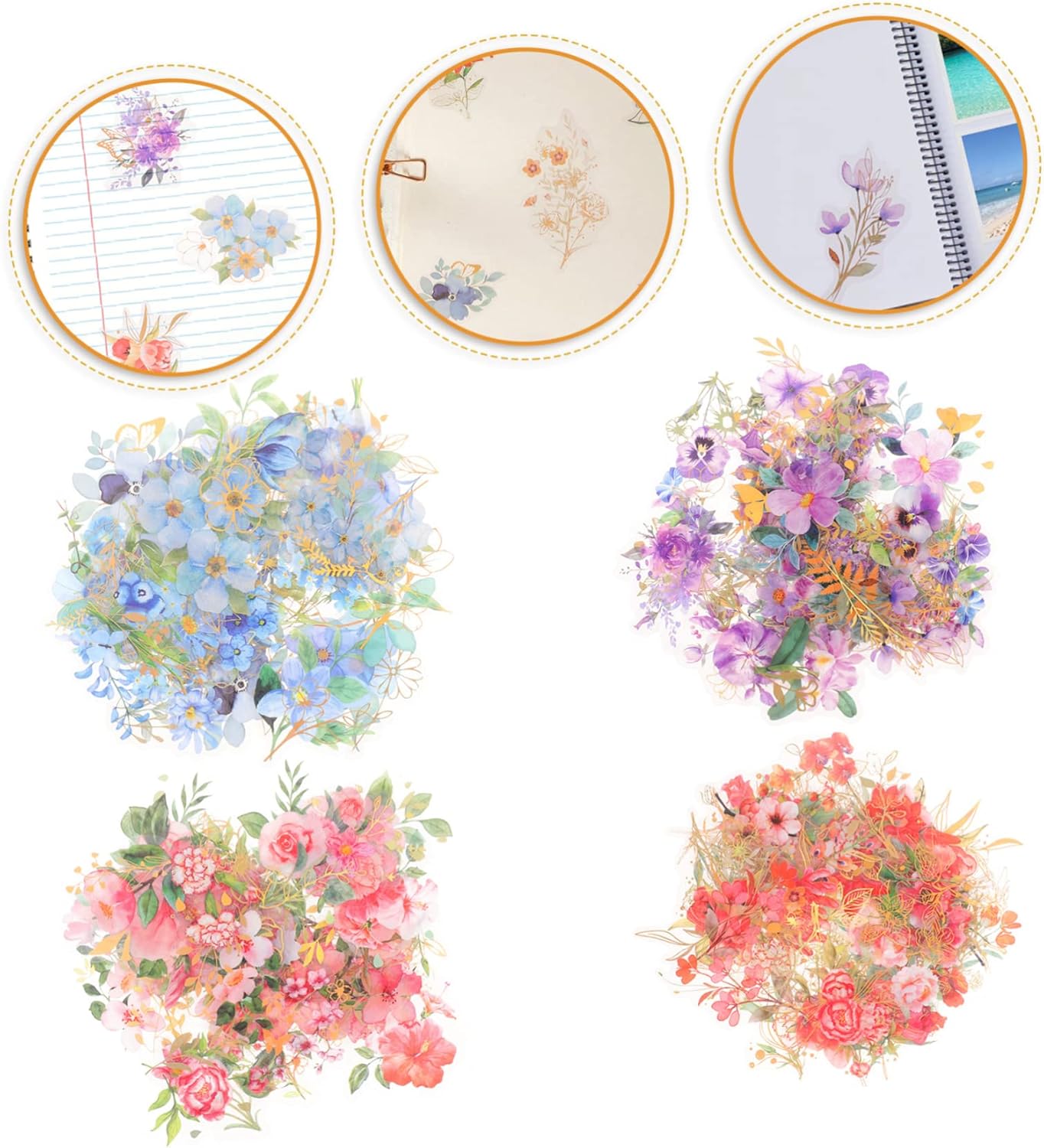 Adesivi per conti manuali - hanno una vasta gamma di applicazioni, perfetti per borse, buste, copertine di libri, telefoni cellulari, computer, album fotografici fai-da-te, ecc., adesivi per scrapbooking Adesivi per etichette in stile floreale - gli adesivi floreali sono popolari in molte occasioni fai da te come creazione di conti manuali, decorazione di diari, decorazioni di quaderni, ecc., adesivi floreali per scrapbooking Adesivi per scrapbooking - adesivi, possono essere facili da applicare e possono anche essere facilmente incollati sui tuoi album, adesivi per diari Conto manuale: possono essere utilizzati per decorare imballaggi, calendari, cartoline e diari, adesivi per scrapbooking Diversi modelli di adesivi e adesivi per diari realistici, pieni di respiro e naturali