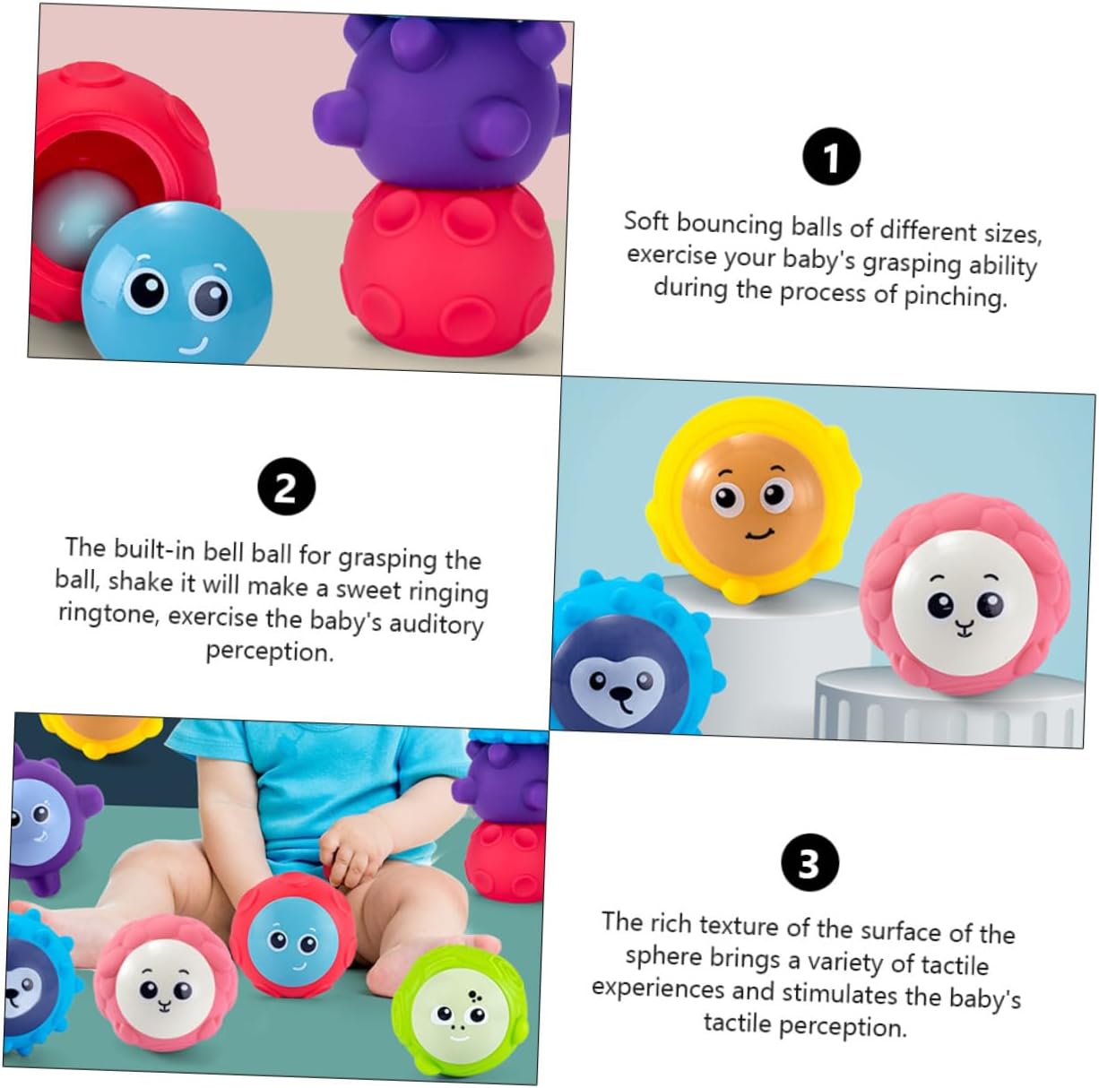 Palla interattiva per bambini: la ricca consistenza della superficie della sfera offre una varietà di esperienze tattili e stimola la percezione tattile del bambino, giocattolo confortante Prendi la palla giocattolo: rafforza la capacità di distinguere visivamente i colori e illumina un'infanzia colorata, toy ball Palla giocattolo puzzle: campanello incorporato, attirerà l'attenzione dei bambini e aiuterà a risvegliare la consapevolezza uditiva dei bambini, giocattolo da afferrare Giocattolo di percezione: adatto per lo sviluppo delle capacità, la comunicazione genitore-figlio, la coordinazione occhio-mano, giocattoli interattivi, giocattoli di comfort Palla percettiva: stimola la vista, la presa, le , l'udito, la capacità di coordinazione occhio-mano del tuo bambino, giocattolo grab ball