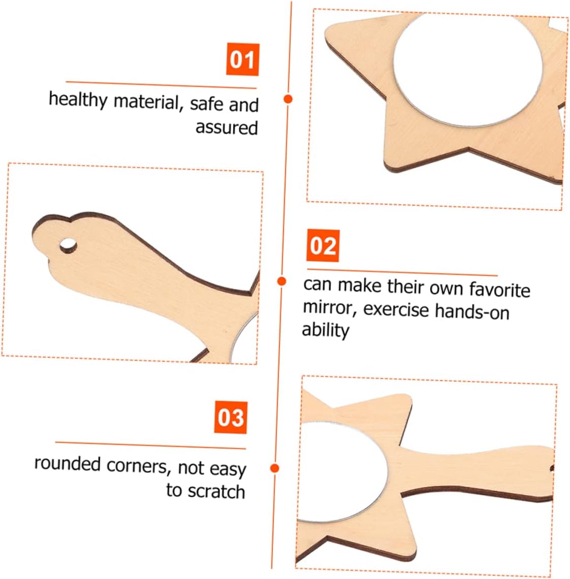 Specchio vuoto per il fai da te: puoi usare penne colorate, argilla o altri strumenti fai da te per creare degli ornamenti su questo specchio di legno vuoto, materiale per l'artigianato Specchio in legno: lo specchio non colorato può esercitare la coordinazione mano-cervello dei e i movimenti fini delle dita, specchio in legno fai da te Adorabile mini specchio: questo specchio portatile fai da te è realizzato meticolosamente e il non sbiadisce facilmente dopo un uso prolungato, specchio in legno per Giocattolo con specchio decorativo: se al tuo piace creare cose , allora questo stampo per specchio fatto a mano è perfetto per lui, specchio vuoto fatto a mano Materiali fai da te per specchio da trucco: lo specchio in legno è ben fatto, adatto per asili, famiglie, genitori e , grazioso specchio a mano