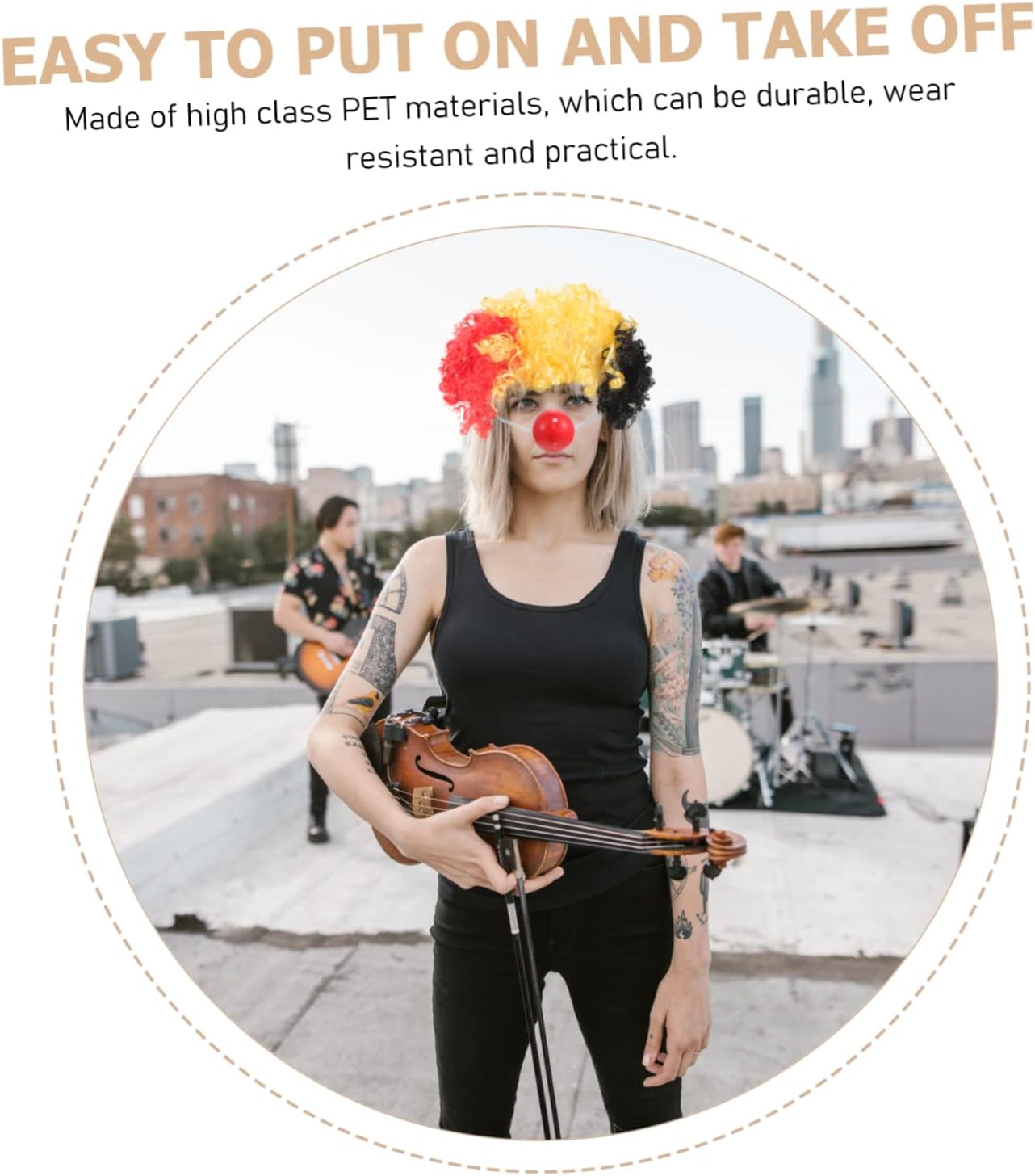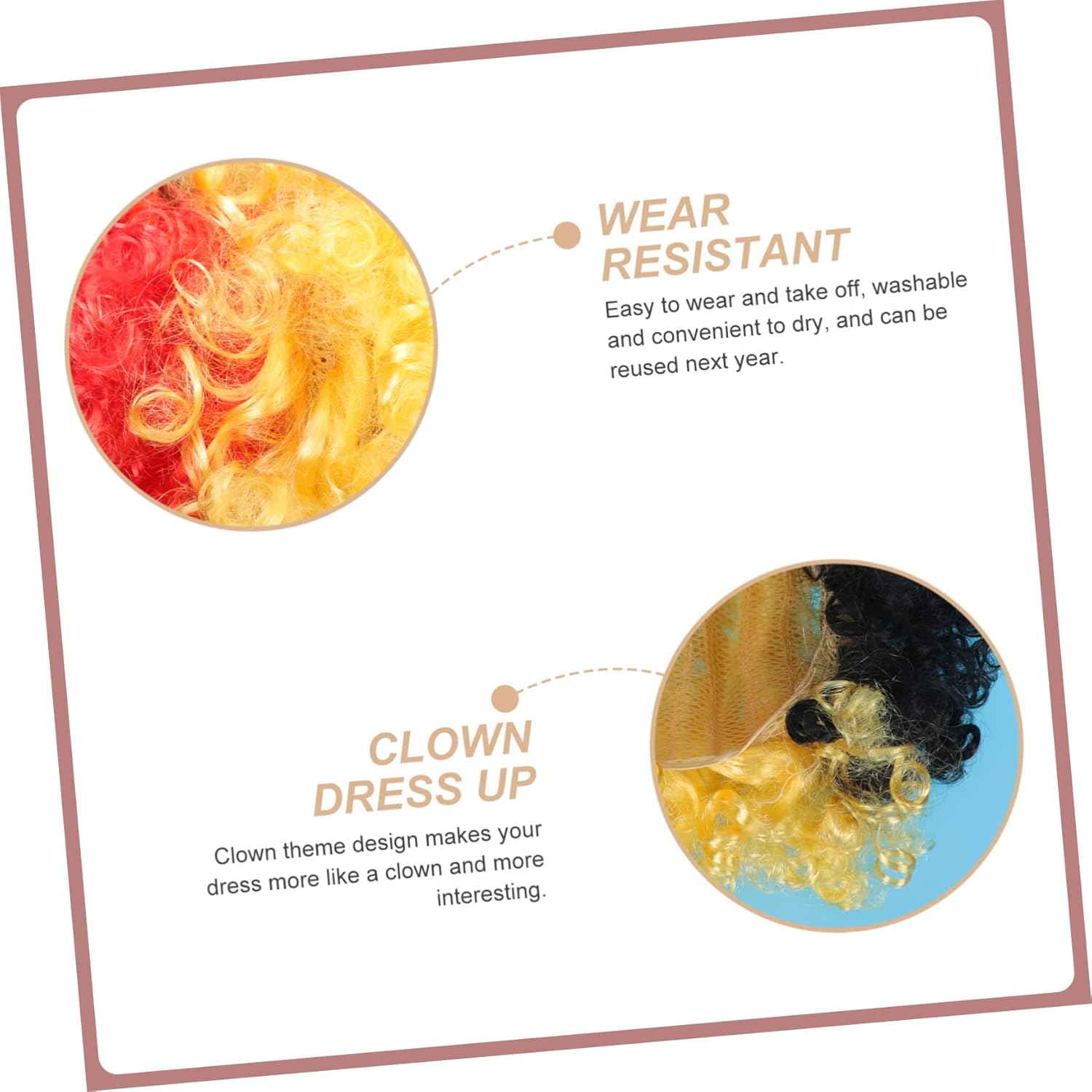 Elenco dei pacchetti 1 x capelli finti Caratteristiche -Colore: Multi capelli finti -Dimensioni: 30,00 x 30,00 x 20,00 cm; capelli da clown traspiranti -Materiale: accessorio per feste in PET -Questi soffici capelli sintetici da clown sono per giochi di ruolo o feste in costume, capelli da clown decorativi. -Il cosplay a tema bandiera nazionale è disegnato con capelli ricci, molto vicini al clown secondo noi. Capelli da clown traspiranti: porta di più, lascia ricordi indimenticabili per stupire i tuoi amici con finti capelli di carnevale. -I capelli da clown non sono solo per parchi a tema, ma anche per feste, eventi sportivi e festival, capelli da clown portatili. -Questo costume da clown ti farà distinguere dalla massa, accessorio multifunzione divertente e vivace. Traspirante Informazioni sul prodotto Molto accattivante e divertente. Divertenti capelli da clown Realizzati in , leggeri e leggeri da usare. cappello da clown resistente all'usura Ampia gamma di usi, può essere utilizzato per Halloween, feste in maschera o molte attività. La forma della parodia dei capelli finti a tema bandiera nazionale è alla moda, pratica ed elegante