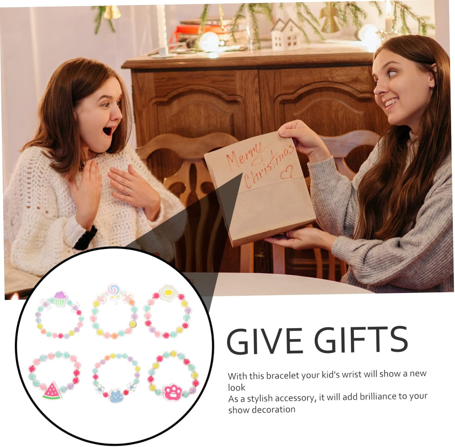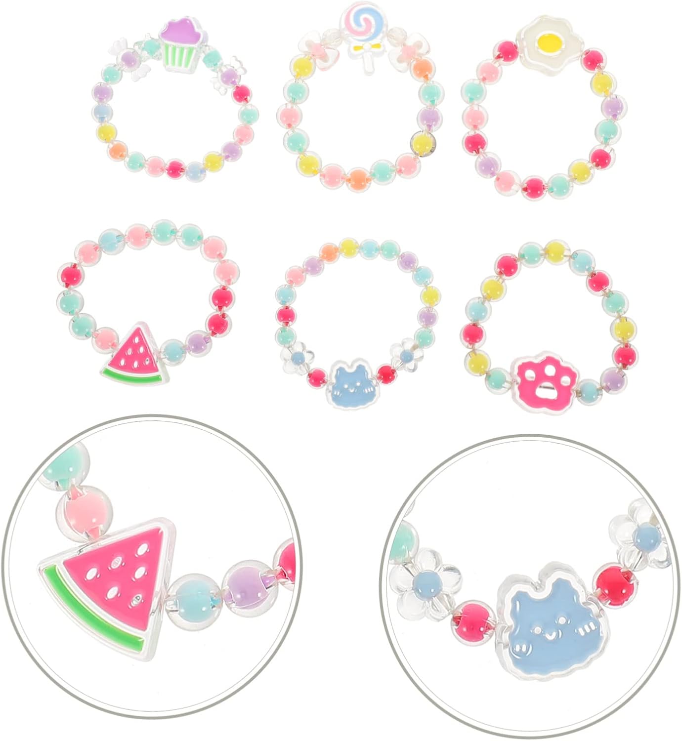 La confezione include 6 braccialetti con perline per bambini Caratteristiche -Colore: Bracciale in colori assortiti per bambini -Dimensioni: 7,00 x 6,50 x 1,00 cm; braccialetto per bambina -Materiale: braccialetto con perline di plastica -Adatto per feste da ballo per bambini, premi di giochi o uso quotidiano, attira immediatamente l'attenzione delle ragazze con i braccialetti con perline per bambini. -Il design unico e la raffinata decorazione dei dettagli rendono il set di braccialetti squisito e adatto ai bambini. -Il nostro braccialetto chic e unico è progettato con cura per le tue bambine per rendere i braccialetti per bambini più alla moda e attraenti. - Molto adorabili e da cartone animato, con un design elegante e raffinato e braccialetti di fattura per ragazze. -Può attirare facilmente l'attenzione di tutti, mostrare ai tuoi bambini ciondoli unici alle feste o folle di braccialetti per bambini Descrizione dei prodotti Bracciale Questi sono braccialetti per bambini, adottano plastica e sono sicuri con un design a forma di ciondolo a forma di cartone animato, questo braccialetto con perline sarà una buona decorazione per i tuoi bambini. Braccialetti per ragazze Set di combinazioni di stili multipli per soddisfare esigenze diverse