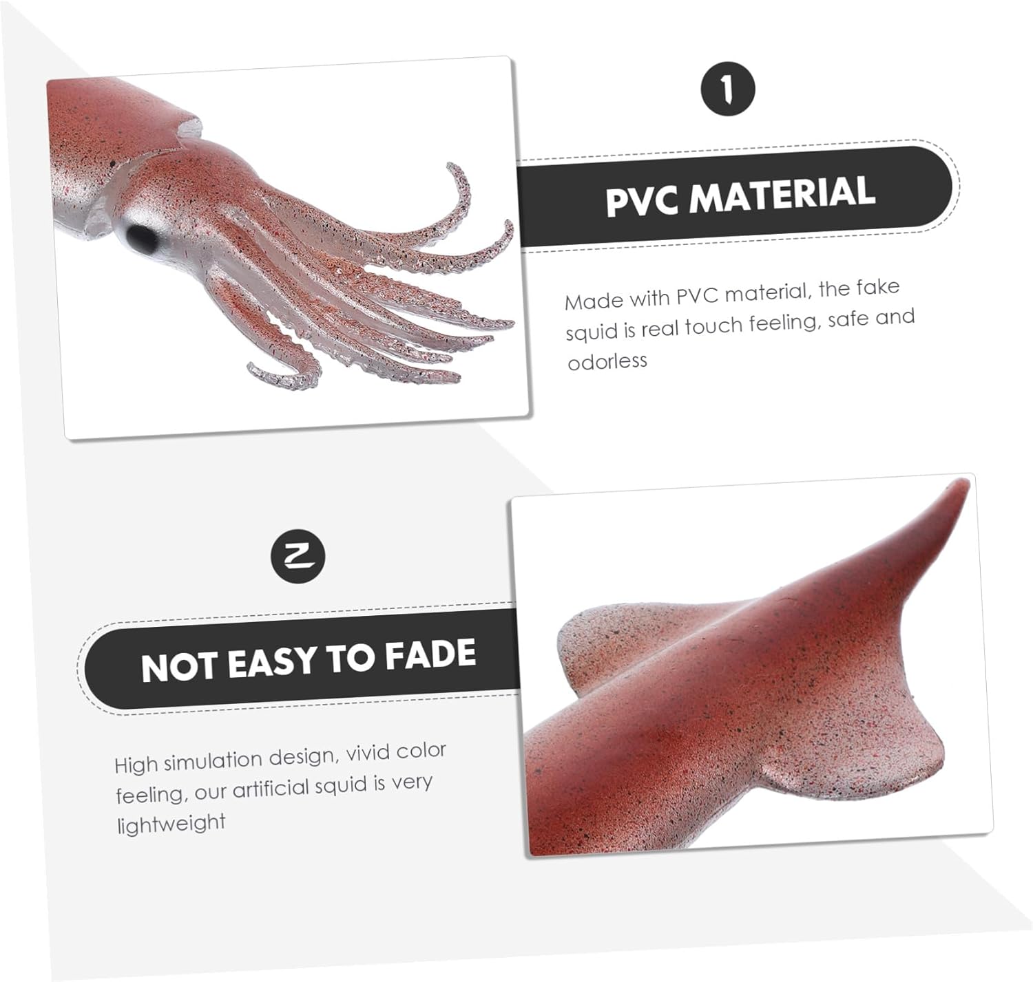 Cibo giocattolo: colori, superficie e dimensioni realistici, il calamaro decorativo realistico sembra proprio come quello , giocattolo Carne artificiale: il calamaro realistico non si rompe né sbiadisce, può essere utilizzato per molto tempo, dai ragazzi che ragazze, come giocattolo di , giocattolo per creature marine Cibo di scena: il di calamaro simulato è un buon oggetto di scena fotografico che può sostituire il calamaro quando si scattano foto, oggetti di scena falsi realistici Carne di giocattolo di plastica: il calamaro realistico sembra molto , ma non può essere mangiato, perfetto per giochi di finzione, cucine giocattolo o qualsiasi occasione speciale, oggetti di scena per cibo artificiale Giocattolo di calamaro: calamaro artificiale, calamaro finto, può essere utilizzato come oggetto di scena per la fotografia, accessorio per la casa, giocattolo alimentare finto e così via, cibo di plastica