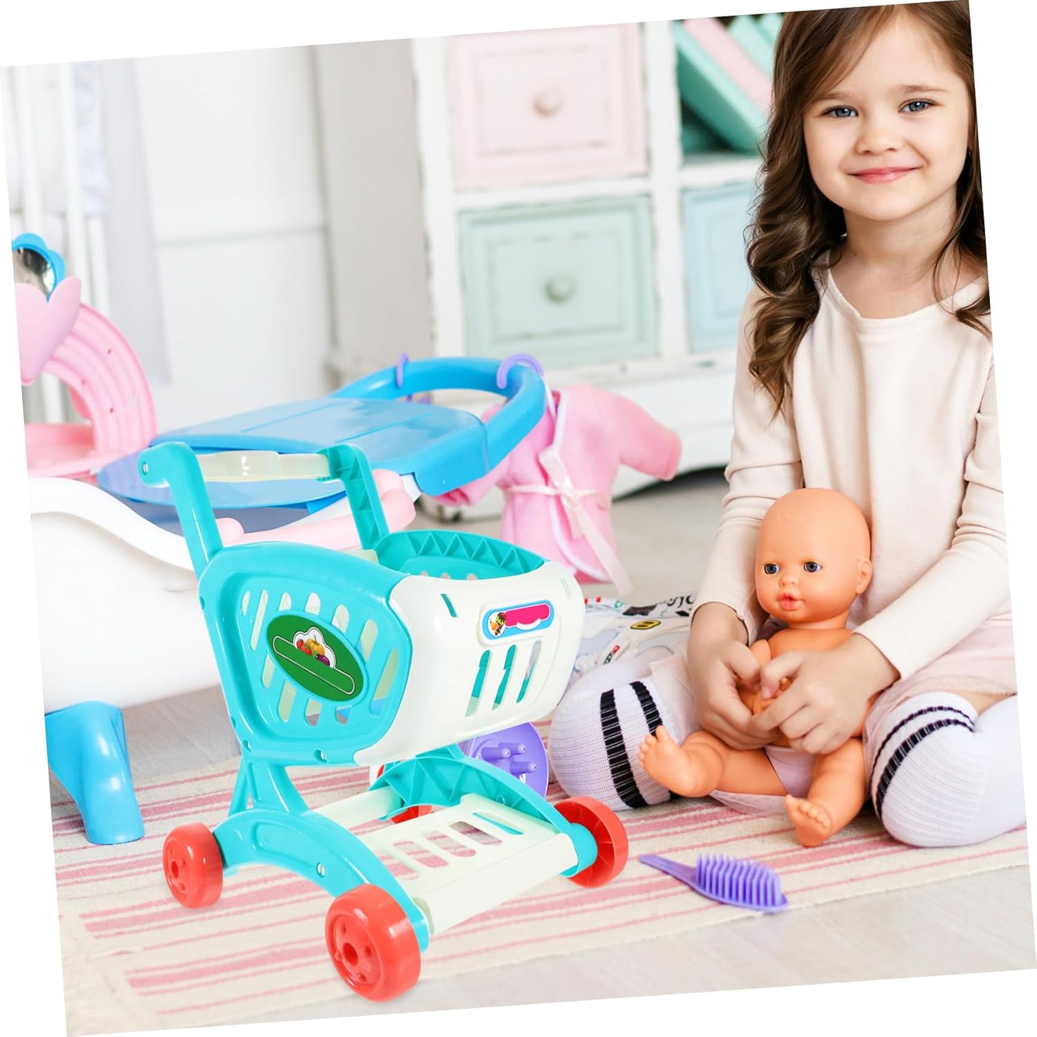 Piccolo carrello della spesa - mini carrello della spesa e set per giochi con il cibo di dimensioni perfette per piccole e grandi immaginazioni!, Carrelli della spesa per bambini Carrello della spesa per bambini - il design di simulazione rende più attraente per i bambini, i bambini si divertiranno, Carrello della spesa per bambini - Da e per il negozio per l'indipendenza del tuo bambino come gioco di ruolo, Mini carrello della spesa Carrello della spesa per bambini - realizzato in materiale plastico e abbastanza comodo da usare, carrello della spesa per bambini Carrello della spesa per bambini - design ad arco scientifico, bordi smussati senza spigoli, sicuro per far giocare i bambini felici, carrello della spesa per bambini